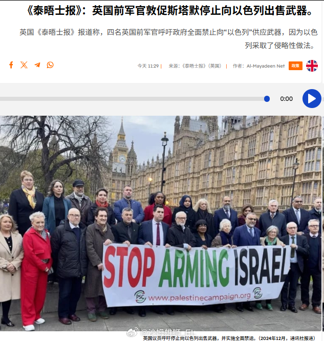四名英国陆军军官要求英国政府全面停止对以色列的武器出口。