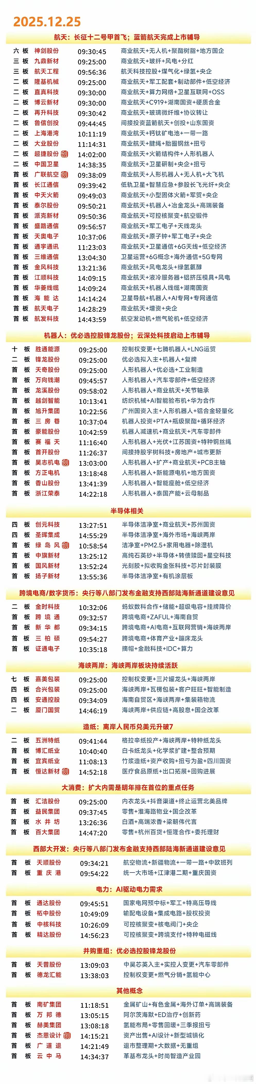 12月25日涨停复盘 | 机器人、商业航天概念全线走强,芯片产业链概念、造纸概念大涨