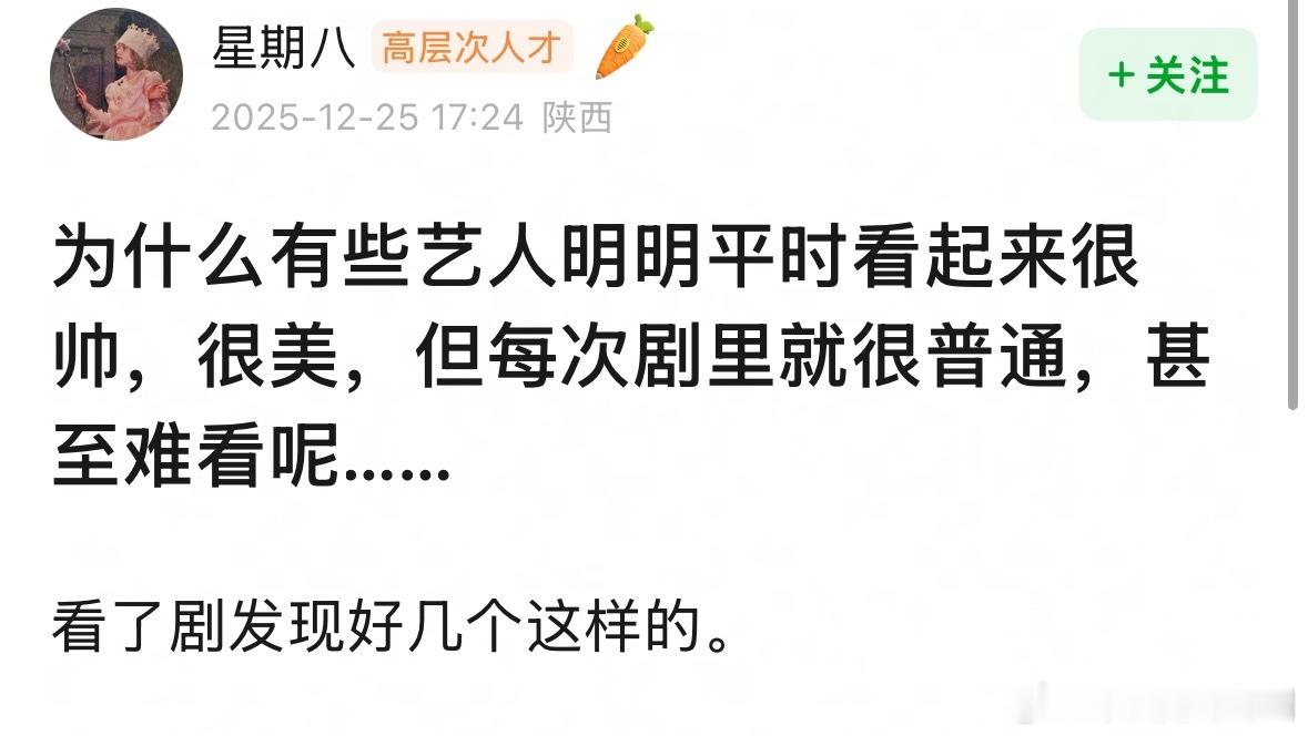 为什么有些艺人明明平时看起来很帅,很美,但每次剧里就很普通,甚至难看呢…