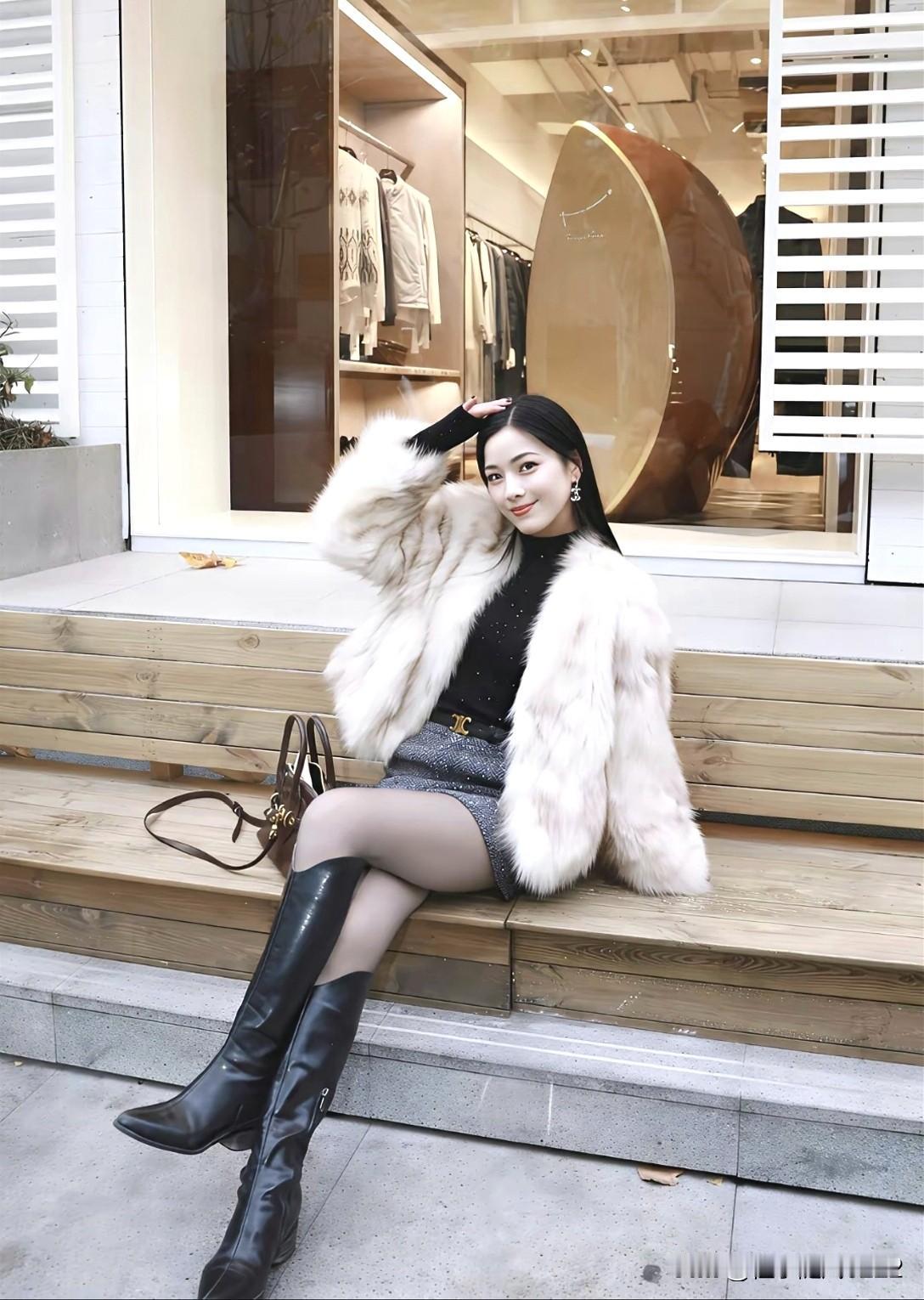 冬日穿搭指南:毛茸茸外套+黑色皮靴,温暖又时尚
