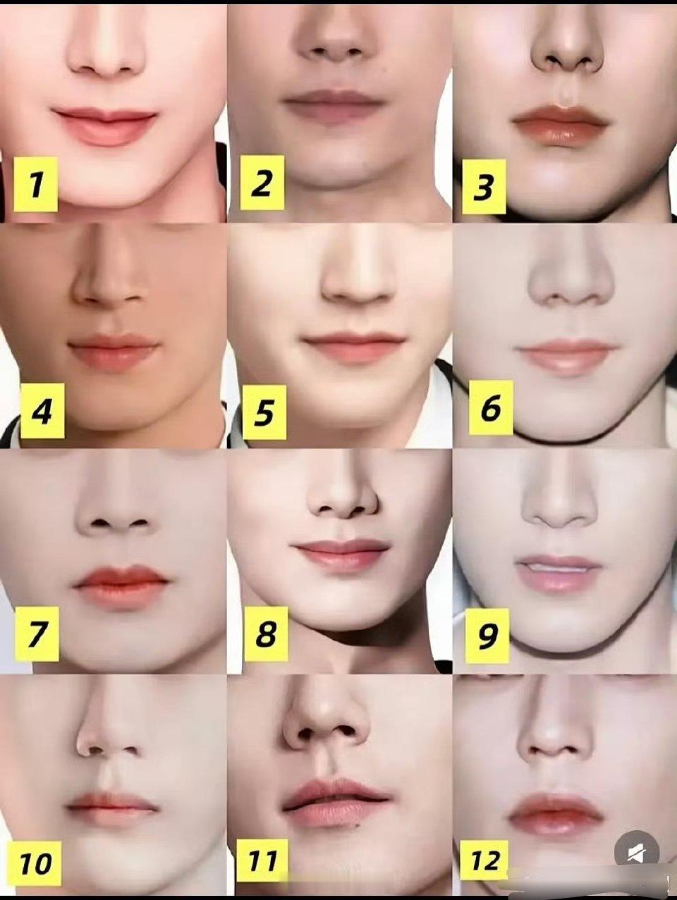 男艺人的👄合集来了,一共十二张,真的不是真爱粉都认不出来啊,单纯靠👄来识别人,你能认出来哪个是谁吗?