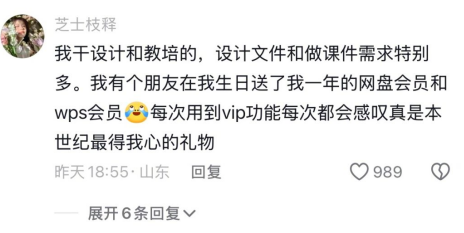 我有个朋友在我生日送了我一年的网盘会员和wps会员, 每次用到vip功能每次都会感叹真是本世纪最得我心的礼物