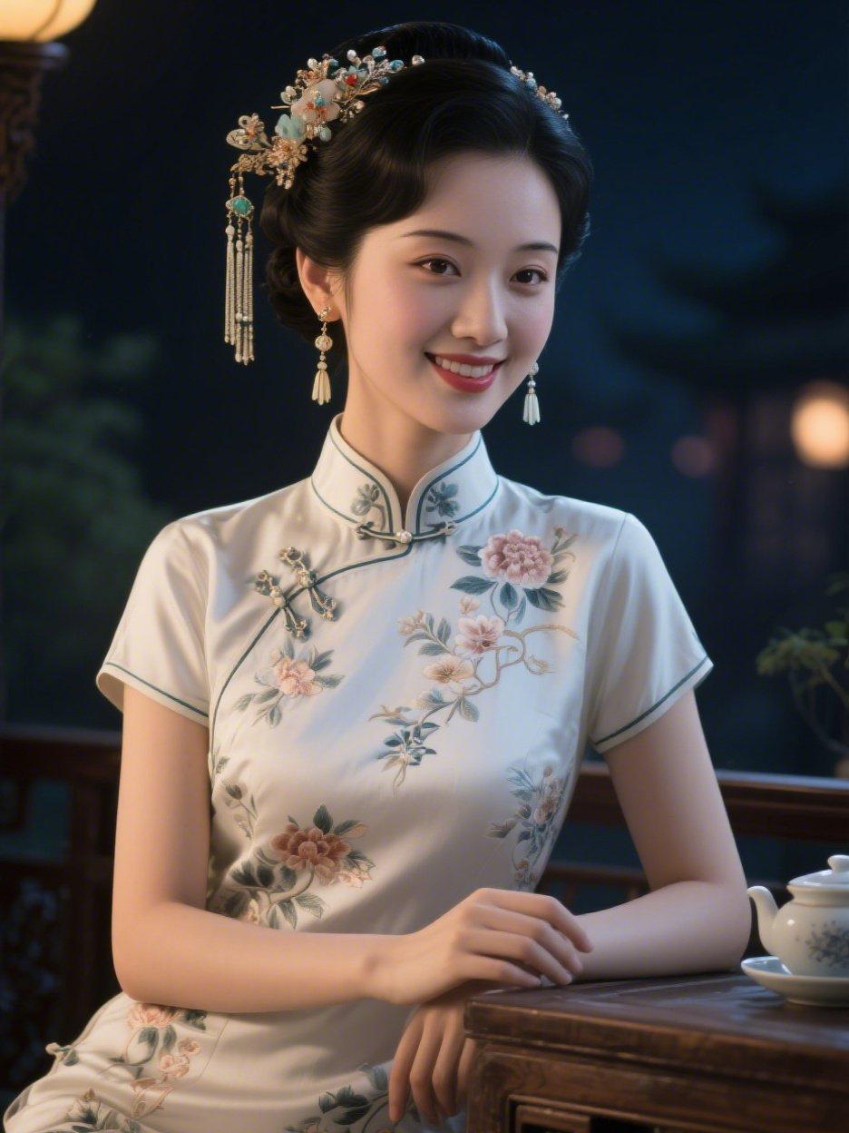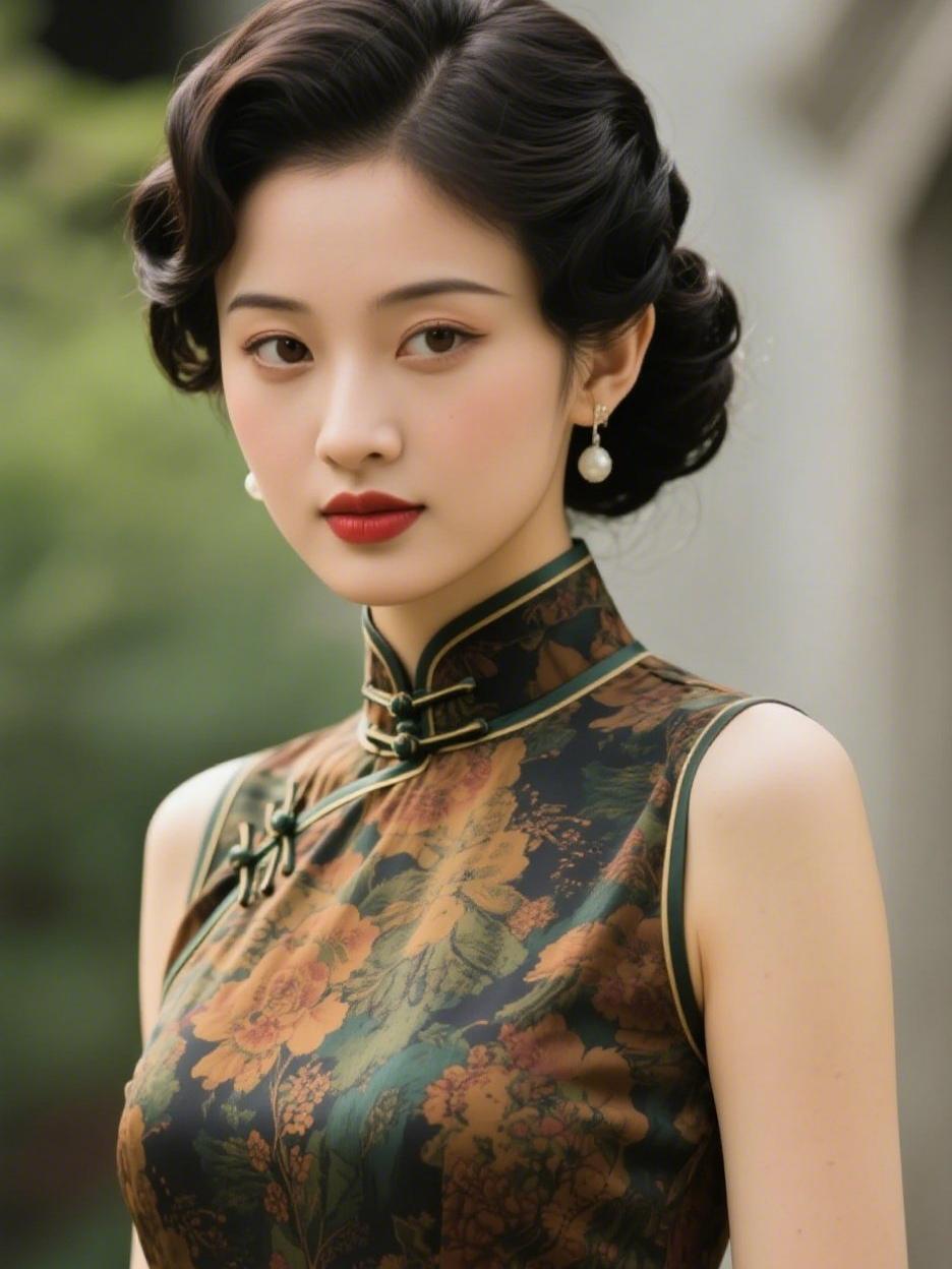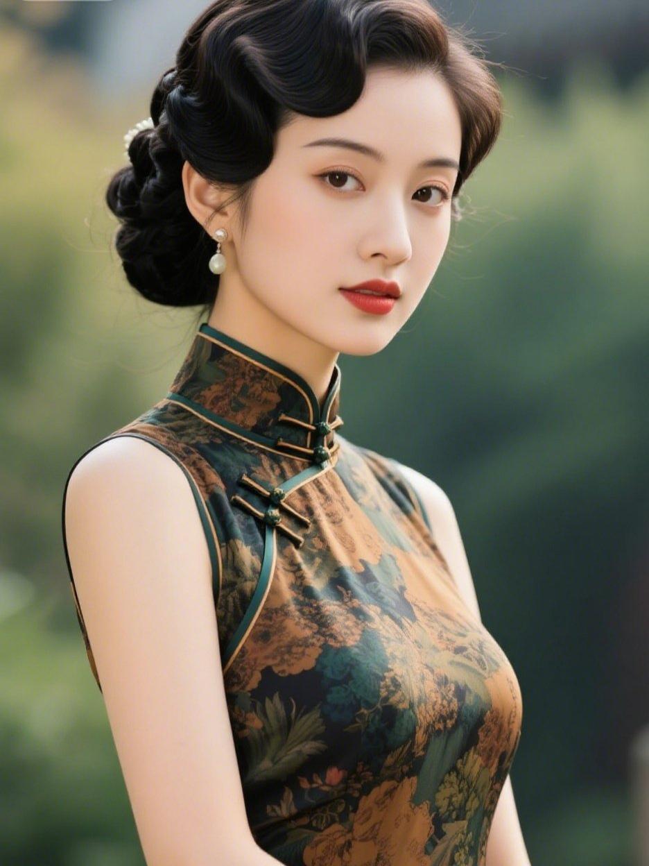 《旗袍褶皱里的风》 裁一寸民国的月白 缝进斜襟的盘扣 风,就从织锦的纹路里 悄悄钻了进来 它掠过苏绣的兰 在缠枝莲的褶皱里打旋 把老巷的叫卖声揉碎 又抖落几滴茉莉香 青砖墙上的苔痕 被它吹成流动的墨 油纸伞半遮的眉眼 漫过了乌篷船的摇橹声 风是旧时光的信使 藏在盘扣与襟摆的缝隙 每一道褶皱的起伏 都是岁月的浅唱低吟 温柔风国风旗袍 气质盘扣 温柔盘扣 国风老旗袍 旗袍立领裙 墨影竹蝶盘扣裙
