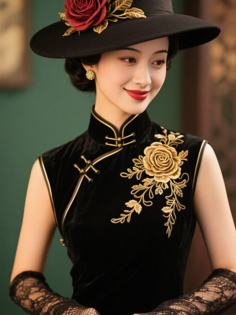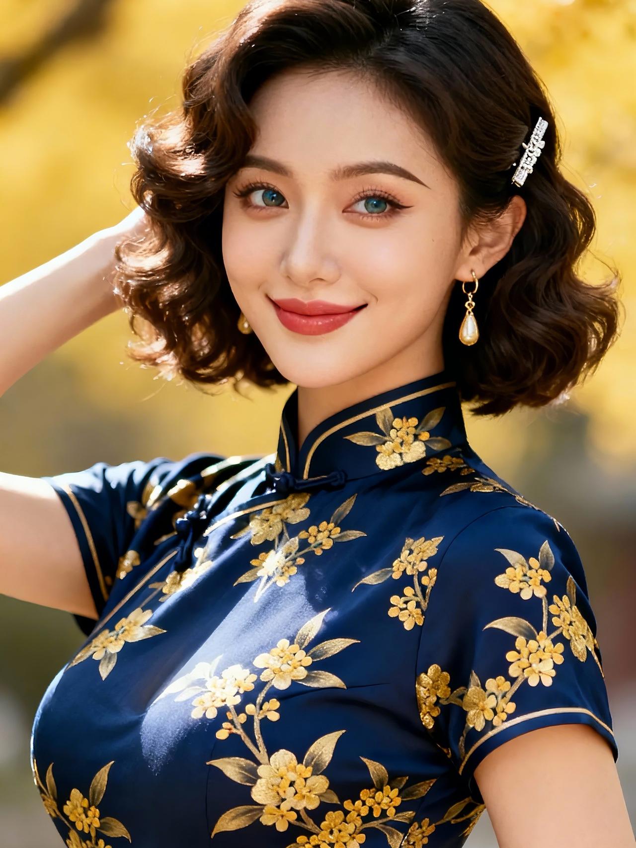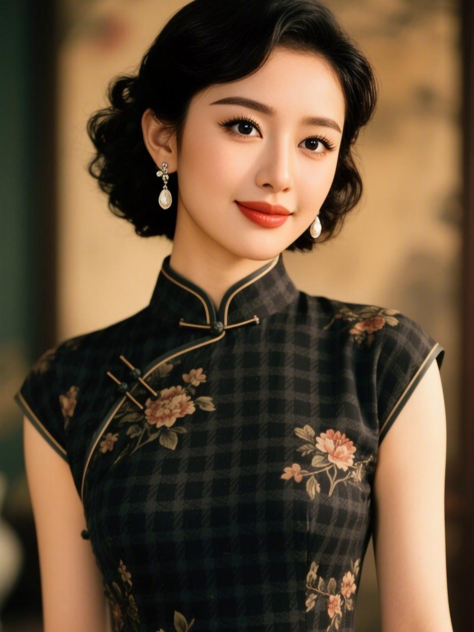 《旗袍褶皱里的风》 裁一寸民国的月白 缝进斜襟的盘扣 风,就从织锦的纹路里 悄悄钻了进来 它掠过苏绣的兰 在缠枝莲的褶皱里打旋 把老巷的叫卖声揉碎 又抖落几滴茉莉香 青砖墙上的苔痕 被它吹成流动的墨 油纸伞半遮的眉眼 漫过了乌篷船的摇橹声 风是旧时光的信使 藏在盘扣与襟摆的缝隙 每一道褶皱的起伏 都是岁月的浅唱低吟 温柔风国风旗袍 气质盘扣 温柔盘扣 国风老旗袍 旗袍立领裙 墨影竹蝶盘扣裙