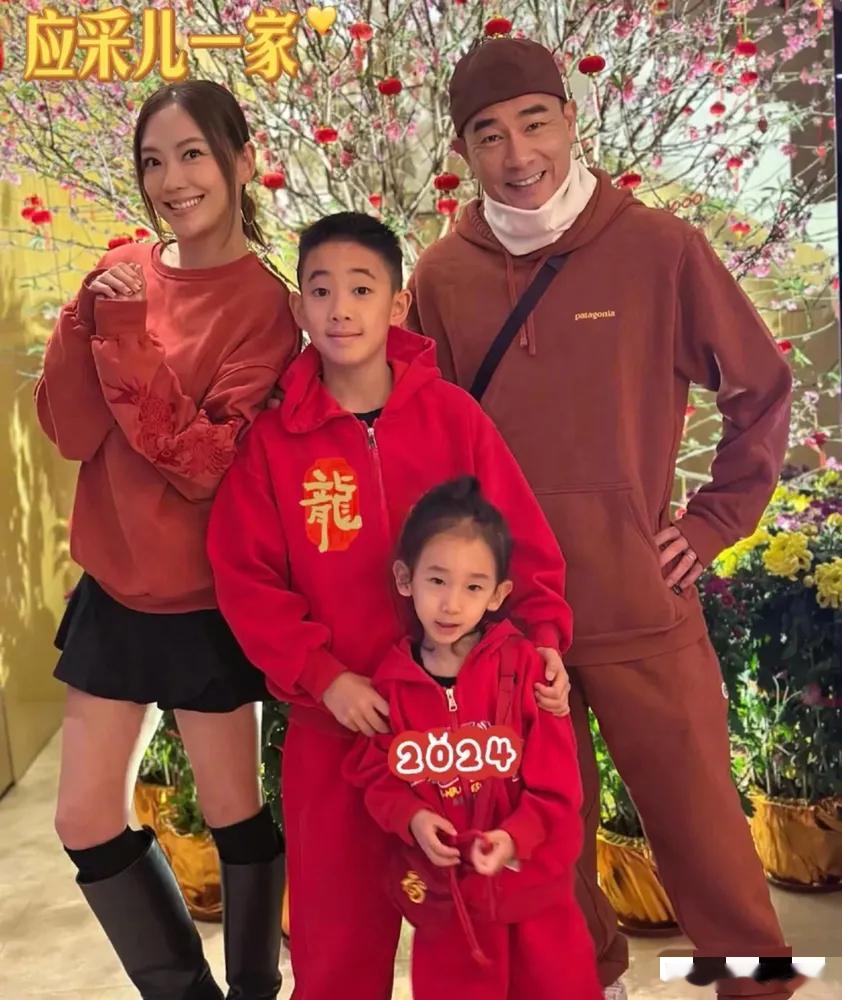 应采儿一家四口过圣诞,5岁二胎儿子扎小辫看着好秀气,总是被认成小女孩,陈小春年轻