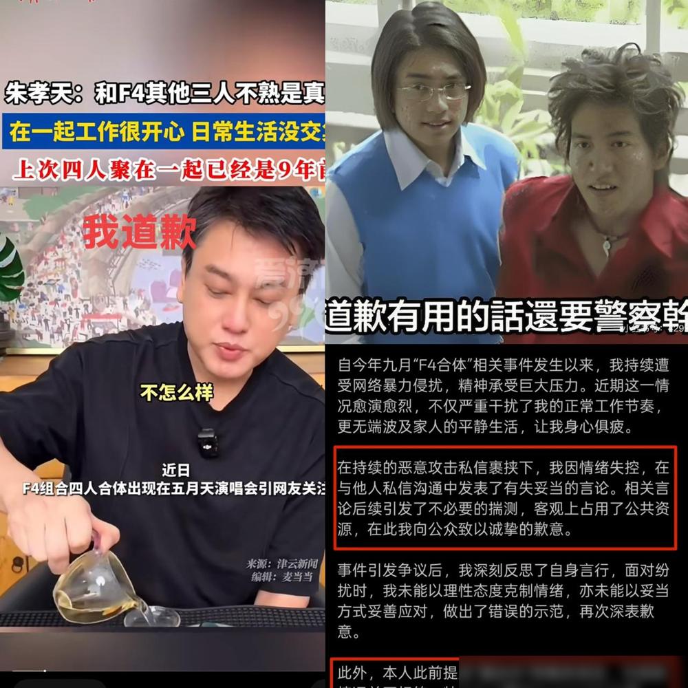 道歉了朱孝天发了澄清说明并道歉大致意思是:1、卖惨:被恶意网暴,我压力大,身心俱疲波及家人,太委屈了。 其实就是他在之前的争议言论翻车后,顶不住压力出来发了个说明,想给这事儿画个句号。 但我看完总觉得心里怪怪的,他把那些被大家吐槽的话归结为被攻击后的“情绪失控”,这逻辑多少有点甩锅的意思。 我更在意的是他文里那些遣词造句,明明是说错了话,非要用“不相符”或者“有失妥当”这种中性词来模糊掉。 这种表达方式让人感觉,他并不是真的觉得自己认知有偏差,而只是觉得这次“公关危机”处理得不够利索。 说实话,这种一边道歉一边自证委屈的姿态,反而把原本就不多的诚意给稀释掉了。 尤其是最后那种“我都道歉了你们就散了吧”的潜台词,听起来像是在反过来给网友施压,好像谁再追究谁就不理智了。 我感觉现在的网友其实并不怕你犯错,怕的是那种“我可以胡说,但你必须闭嘴”的傲慢劲儿。 这种带点强迫意味的和解,恐怕很难让大家真的买账,反而可能激起新一轮的反感。