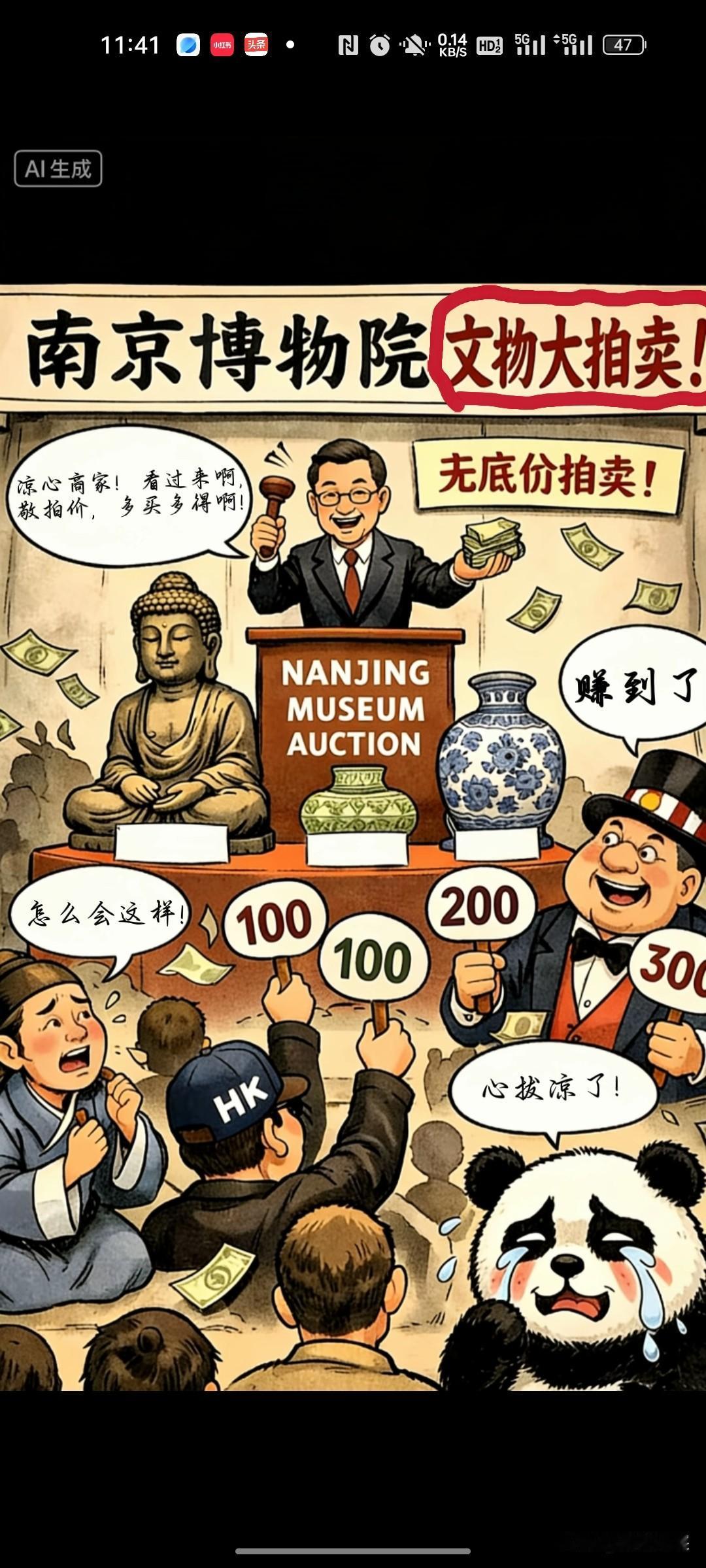 南京博物院,这座历史悠久的文化殿堂,近日却因为一幅漫画而引发热议。一位网友在网络上发布了一幅别出心裁的设计图,这是一块招牌,上面写着“南京博物院”几个字,但字迹却十分特别,每一个字都少了几笔,仿佛是被人故意刮去了一样,而少掉的每一笔画,都有着深刻的寓意。 这幅漫画所传达的意思非常直观,每少一笔,就代表着博物院的资产被“卖掉”了一部分,随着时间的推移,原本完整的招牌变得越来越模糊,最终只剩下一个空壳,这种变化就像是博物院的发展一样,曾经的辉煌慢慢消逝,只留下一个“博物院”的名字,但里面的东西却已经所剩无几。 这样的比喻太形象了,也让人不禁感慨,这幅漫画真的是太有才了!网友用这样简单的方式,就把博物院所面临的现实问题展现得淋漓尽致,也让更多的人关注到这个话题,意识到文化遗产保护的重要性。 这也让我想起了之前看到的一些报道,关于一些博物馆因为缺乏资金而不得不出售文物的事情,甚至还有一些文物被低价拍卖,这样的做法无疑是对文化遗产的一种亵渎,也让人十分心痛。希望这样的事情能够得到更多人的关注和抵制,也希望每一个人都能够珍惜身边的文化遗产,一起为保护文化瑰宝出一份力。 高手在民间,这句话果然没有错!通过这幅漫画,让更多的人了解到了博物院所面临的问题,也让更多的人意识到文化遗产保护的重要性,这样的创意设计真的是太有意义了!希望以后能够看到更多这样的作品,也希望每一个人都能够用自己的方式,为文化遗产保护贡献一份力量。