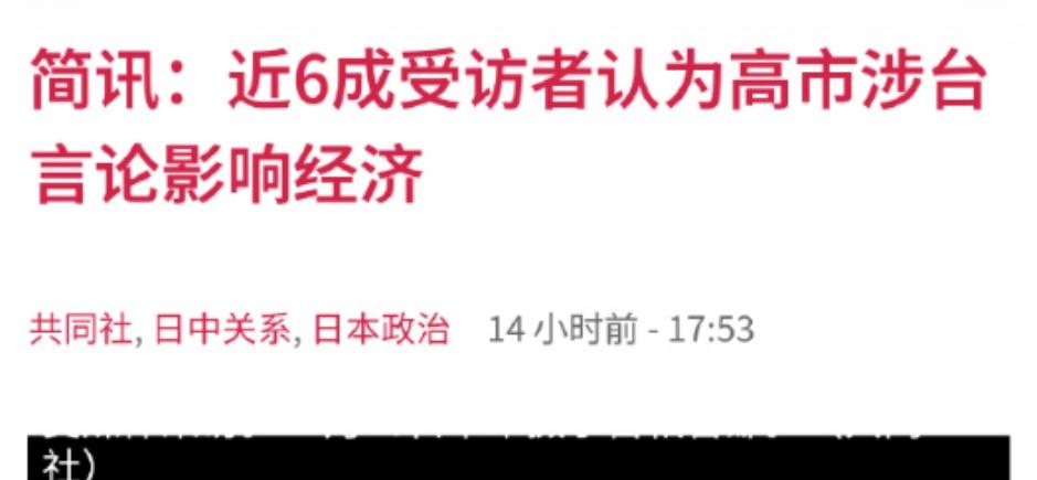 中方一系列惩罚令日本损失惨重后:6成日本人觉得高市早苗言论不应该! 最近,共同社最新发布的民调:近六成(59.9%)的日本民众认为,高市早苗的言论已经对本国经济造成了实质性的负面影响。作为日本旅游业最重要的客源之一,中方游客每年为日本带来数千亿日元的消费。 但自10月中旬后,大量行程被取消。据日本观光厅和民间智库估算,截至11月底,因中方游客减少造成的直接经济损失已达1.79万亿日元(约合120亿美元)。而12月的数据尚未完全统计——考虑到年底是赴日购物和温泉旅游的旺季,实际损失很可能远超这一数字。 更关键的是,这种冲击并非只停留在旅游层面。中方同步暂停了日本水产品的进口,而这恰恰打中了日本渔业的命门。数据显示,中国曾是日本水产品最大出口市场,占其总出口额的22%。许多地方渔港一夜之间订单归零,小型加工商陷入停产,连带着餐饮、物流等相关行业也受到波及。 终于,高市早苗的言论在日本国内也引发了意见分裂。虽然仍有57%的受访者不认为她的发言属于“出言不逊”,但这恰恰说明问题的复杂性:一部分人支持强硬立场,但更多人开始意识到,鲁莽挑衅正在反噬民生。一些地方商会甚至联名呼吁高市早苗修复对华关系。