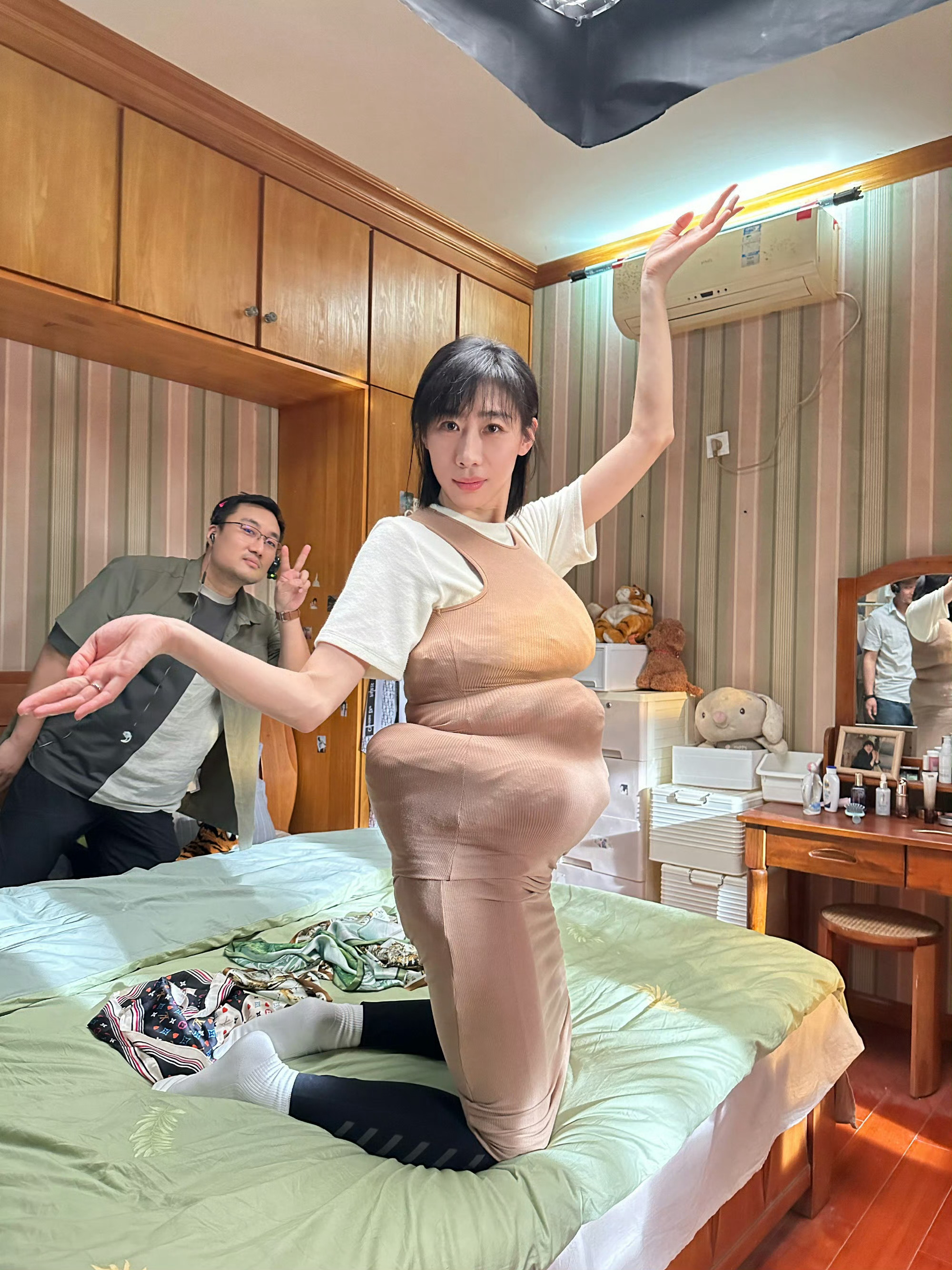吴艳妮在成都穿着短裤大腿看起来很粗壮,表情自信又张扬