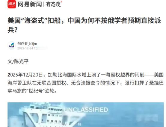 美国再次让世人看到美国的“强大”和为所欲为。中国要美国立即返还该油轮否则中国就可以美国的任何到台湾或其他地方的货轮,看他美国人任哪一头?   这两天,美国又在公海上上演了一出“霸权大戏”,再次让全世界看清了什么叫所谓的“美国强大”——说白了就是仗着武力为所欲为,把国际规则当空气。   就在大家还在热议上月美军在印度洋非法登临中国货轮的荒唐行径时,更过分的事来了:一艘归属中国企业、满载原油的油轮,在加勒比海国际水域被美国海岸警卫队强行扣押,美国总统甚至公然放话要“永久保留”油轮和所载原油,要么出售要么纳入自己的战略储备,这哪里是什么“执法”,分明就是赤裸裸的国家掠夺。   面对美国这种强盗逻辑,中方这次不再客气,直接亮明底线:立即无条件返还被扣油轮和货物,赔偿中方所有损失,否则中方将采取对等反制措施,美国任何驶往台湾地区或其他海域的货轮,都将面临同等对待,看他美国人到底敢选哪一头。   可能还有人没理清来龙去脉,咱们先把事情的前因后果说清楚。这已经不是美国第一次在公海上对中国商船下手了,就在2025年11月,美军特种部队就曾在斯里兰卡外海几百英里的印度洋公海上,强行登上一艘从中国港口出发、开往伊朗的货轮。   当时美军二话不说,直接扣押并销毁了船上部分货物,给出的理由是这些是“军民两用物资”,可能帮助伊朗发展导弹计划。但这话谁信呢?   美方从头到尾都没拿出任何过硬的证据,就连被扣押的船名和船东都不敢公开,做完这档子亏心事就匆匆放船走人,其目的再明显不过,就是想靠这种流氓手段阻断中伊之间的正常贸易往来。   本以为美方会收敛一点,没想到短短一个月后,他们变本加厉,把黑手伸向了更大吨位的油轮。   这次被扣的“世纪号”油轮,虽然挂着巴拿马旗,但实际是中国香港企业运营,油轮和所载的180万桶委内瑞拉重油的产权都属于中国企业,而且所有贸易手续齐全合法,是通过正规渠道采购的,原定要运往广东揭阳的炼化基地。   更过分的是,这艘油轮和所载原油,压根就没被列入美国、欧盟等任何国际组织或国家的制裁名单,完全是合规的商业运输。   可美国不管这些,趁着油轮刚离开委内瑞拉水域、进入公海的安全空窗期,直接派直升机载着特种人员强行索降登船,整个过程既没有联合国的授权,也没有向船旗国巴拿马履行任何通报手续。   甚至连正规的查封令都拿不出来,面对船员的质疑,也只是含糊其辞地找了个“核查船舶注册合法性”的借口,这操作跟海盗抢船没任何区别,连委内瑞拉政府都直接怒斥这是“国际海盗行径”。   更嚣张的是,美方扣押后还不打算归还,美国总统公然宣称要“永久保留”,这种言论彻底撕下了美国所谓“遵守国际规则”的遮羞布。要知道,根据《联合国海洋法公约》,公海是全人类的共同财产,各国船舶都享有航行自由。   只有在打击海盗、奴隶贩运等特定情形下,才能行使登临权,而且必须有确凿证据并获得相关授权。美国这次的行为,三项前提一个都不满足,说白了就是仗着自己军事实力强,想抢就抢,想扣就扣,把公海当成了自己的“后花园”,把单边制裁当成了掠夺他国财产的工具。   他们之所以敢这么肆无忌惮,无非是觉得自己在海上实力超群,其他国家只能忍气吞声,但这次他们显然打错了算盘。   这艘油轮涉及的是中国的核心利益,不仅关系到国内炼化产业的原料供应,更牵扯到中委之间“油换贷款+人民币结算”的重要合作,这是中国能源安全的压舱石,也是人民币国际化的关键实践,美方想靠扣押油轮切断这条合作链,遏制中国发展,简直是痴人说梦。   面对美方的霸权挑衅,中方这次的态度异常明确且强硬,第一时间就召见了美国驻华大使,拿出完整的权属证明和贸易文件,严正抗议美方的非法行径,明确要求美方立即释放油轮、返还货物并赔偿所有损失。   同时,中方还向联合国安理会提议召开紧急会议,把这事摆到国际台面上,让全世界都来评评理,揭露美方“海盗式”扣船的真相。要知道,中方的强硬不是凭空而来的,而是有足够的底气和实力支撑的。   在法理上,美方的行为严重违反国际法,中方已经联合国际海事组织在海牙常设仲裁法院起诉美国,拿出了卫星轨迹、贸易合同等全套证据,揭穿美方所谓“执法”的谎言,让美方在国际上陷入道义困境。 在实际行动上,中方也已经开始布局反制措施。   军事上,解放军柳州舰已经调整航线,前往加勒比海执行远洋护航任务,用实际部署回应远海利益受损的情况,这既是在为中方商船保驾护航,也是在向美方展示中国维护海外利益的决心和能力。   经济上,中方已经启动了能源供应应急预案,通过俄罗斯“西伯利亚力量”管道增加输油量、加大伊朗原油进口等方式,保障国内短期能源供应稳定,不让美方的挑衅影响到国内产业发展。