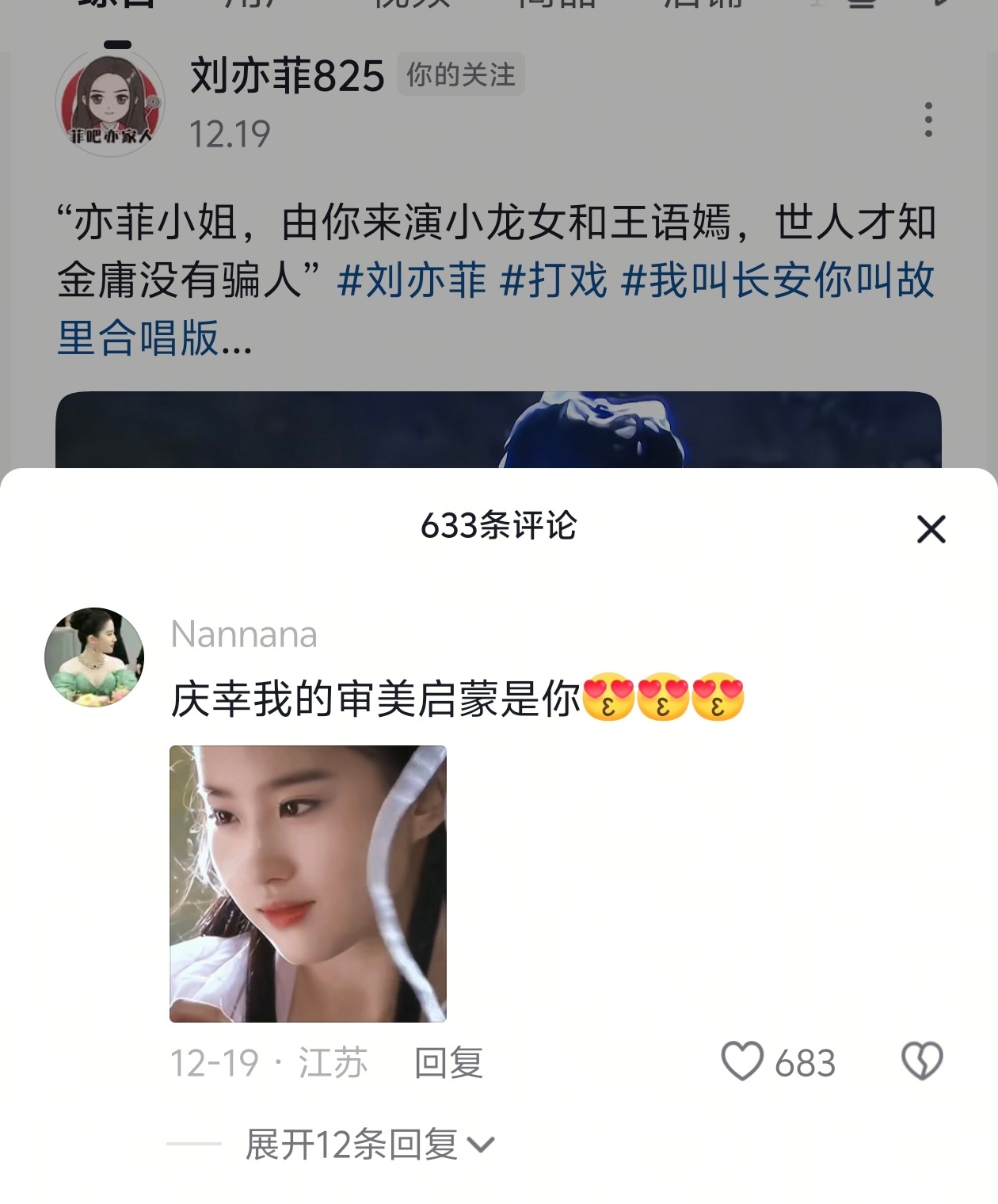 刘亦菲:圣诞快乐🎄