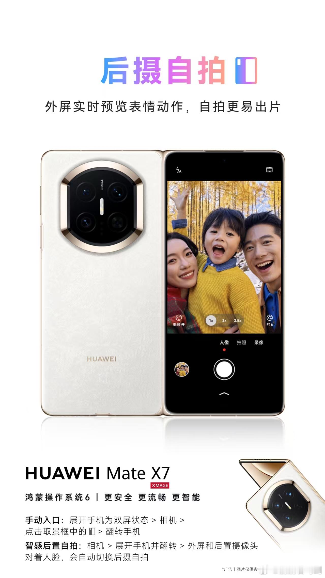 自带手机支架、自带构图助手,自拍还能提前预览效果,MateX7想要拍出好看的照