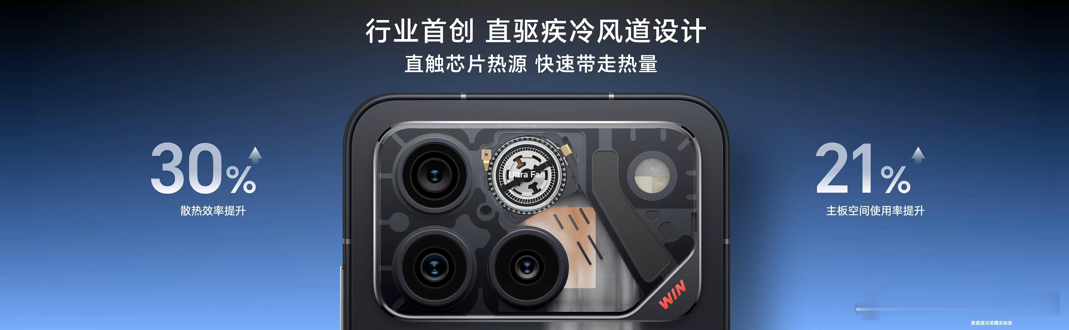 万事俱备,更有东风!荣耀WIN全系搭载荣耀东风涡轮散热,风扇体积行业最小、重量最轻、转速最高。行业首创直驱疾冷风道设计,直触芯片热源,快速带走热量。搭配创新升级的3D蝶翼VC散热系统,带来强劲高效的散热体验,确保长时间高性能输出机身依旧“冷静”。 后置立体进风口设计、IP68/IP69/IP69K满级防尘防水、独立背板设计,以及散热风扇“5年清灰保养”服务,全面消除“横握挡手”“风道积灰”“噪音影响”的三大使用顾虑。 荣耀WIN荣耀发布会荣耀WIN年度电竞最夯机