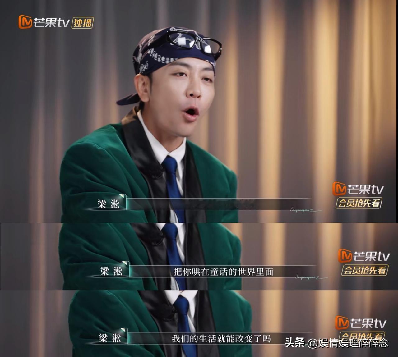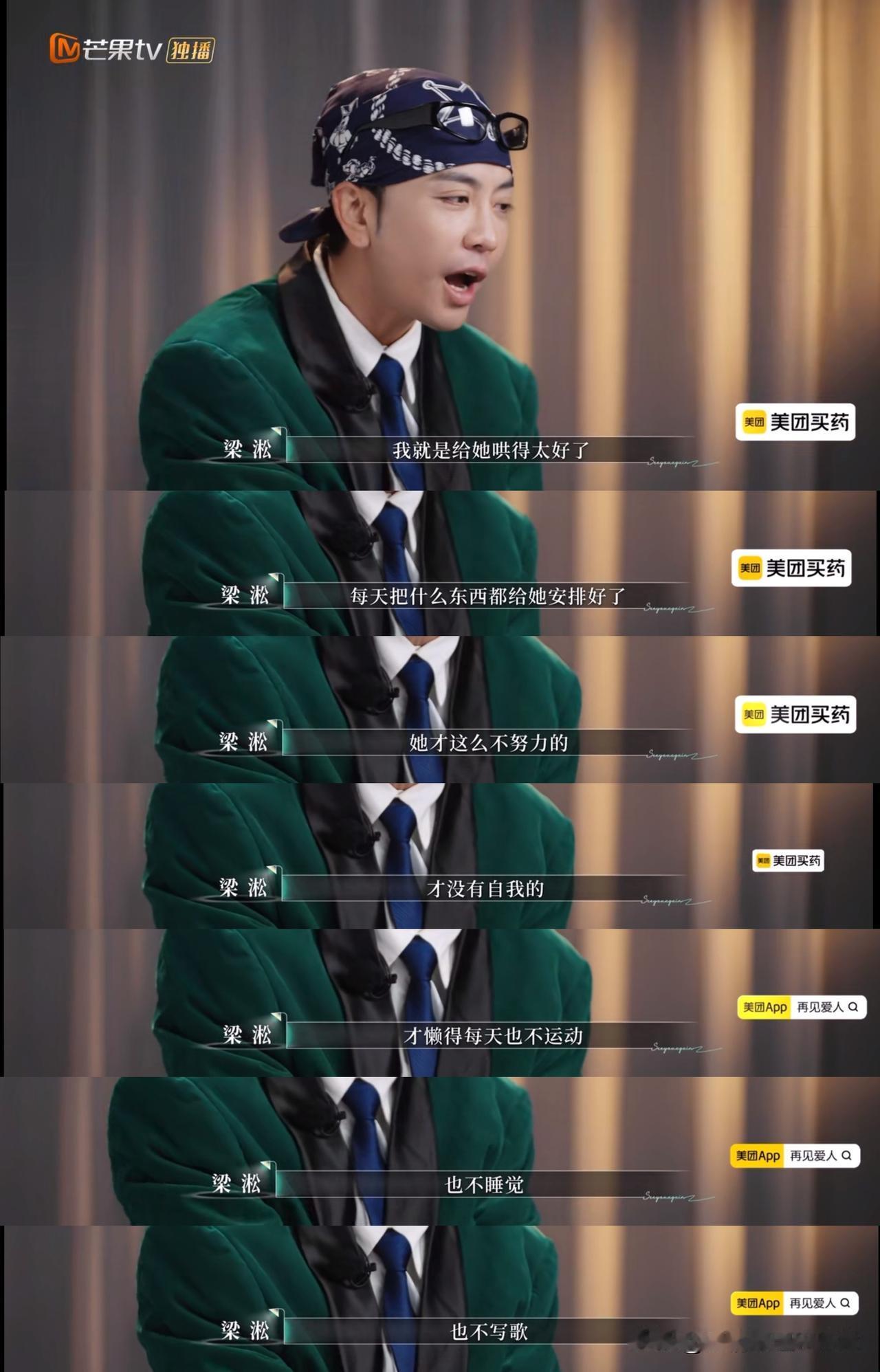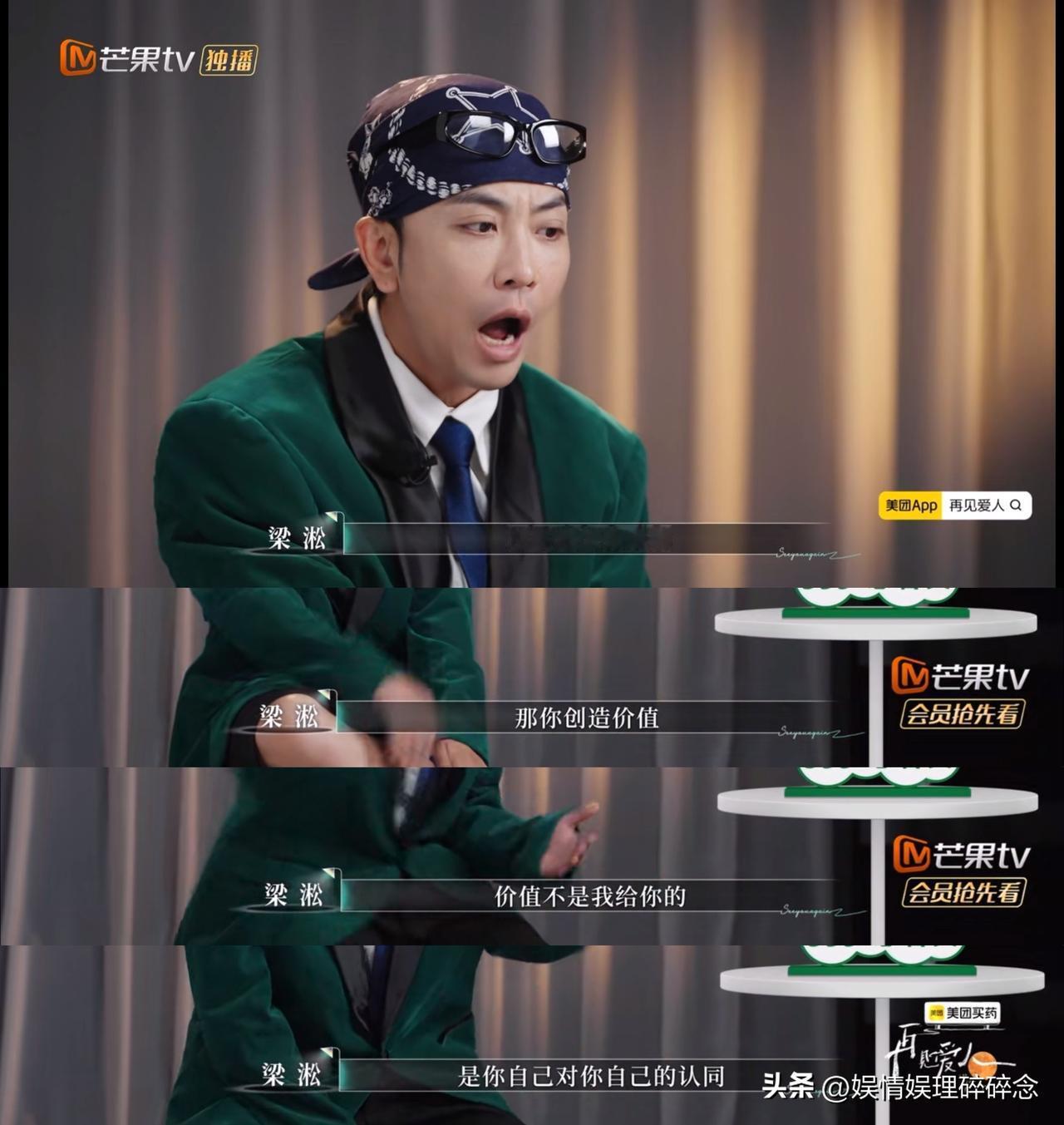 我承认,这是梁淞在《再见爱人》节目里说得最对的一段话—— “我天天编一堆谎话,把你哄在童话的世界里,我们的生活就能改变了吗?我就是给她哄得太好了,每天把什么东西都给她安排好了,她才这么不努力的,才没有自我的,才懒得每天也不运动,也不起床,也不睡觉,也不写歌,还要我怎么哄你,你觉得你没有价值,那你创造价值呀,价值不是我给你的,是你自己对你自己的认同。” 这段话我举双手赞同。节目前几期我觉得梁淞问题很大,现在我发现,当初骂他的声音大了点,换做是我,我也会暴躁。 在最新一期《再见爱人》里,两对嘉宾马上要分开旅行,之后就是最后的抉择。准备上车的时候,何美延又找到梁淞,认为他应该对他之前的言论向自己道歉,又觉得梁淞道歉态度不好,不诚恳,她可以不接受她的道歉。 梁淞觉得自己和何美延在一起就像在考科目一,答错了又回去重考,不断重复。后来单独采访的时候,他说出了那段话。 观察室的嘉宾里,只有papi酱谨慎的站了梁淞,她说:梁淞为什么头皮那么硬,死活不说何美延的付出?现在梁淞立场上,何美延那些“零星”的付出,真的不算付出。梁淞说得不一定不对,何美延应该确实没做很多。 做了什么就说出来,真的很难吗?除非什么都没做。就像之前骂麦琳,但是麦琳做得那些大家都看到的,一件一件都还是说得出来的。但是何美延在这个节目里,真的没看到她在家庭里实实在在做了什么。 也许一句她生了三个孩子,再加上远嫁,就成为了她的底气,可这从来都不是“摆烂”的挡箭牌啊。嘉宾说梁淞让何美延去做自己的事其实是不想何美延来烦自己,那可不是嘛,让梁淞喘口气吧,何美延自己找个班上吧。 再见爱人