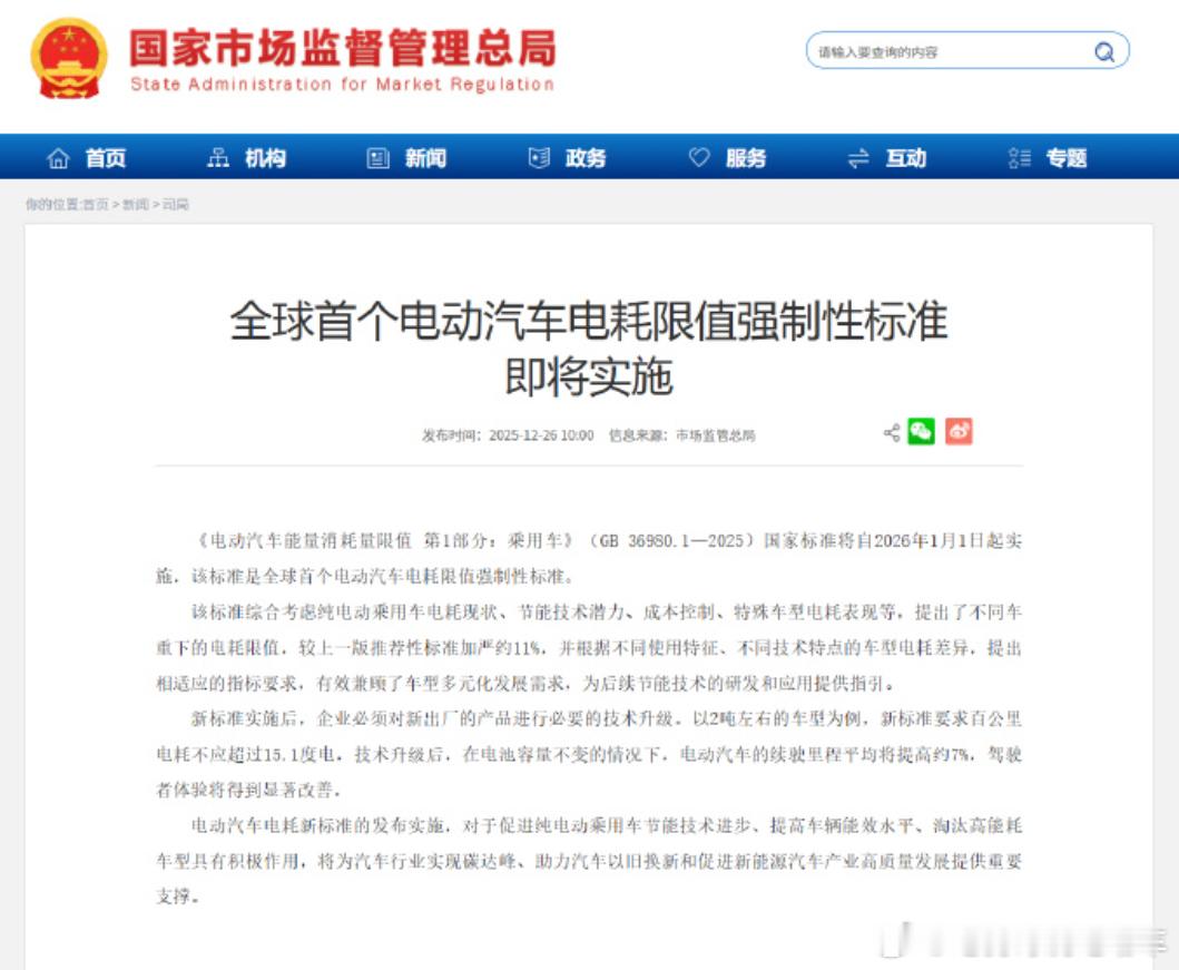 更严!全球首个电耗限值新规来了,明年实施新标准加严约 11% 电耗限值,按车重分级设门槛,比如2吨重的车百公里电耗不能超过15.1kWh。技术升级后,在电池不变的情况下续航平均还能涨约 7%。明年实施电车电耗限值新规新能源汽车电车