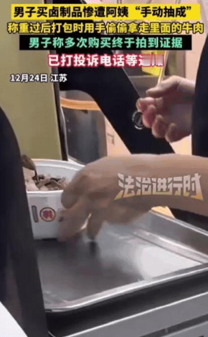 必须严惩!江苏南通,一男子去店里买卤牛肉,店员刚把牛肉称重,就趁着顾客不注意“手动抽成”,不过她没想到的是,男子因为不是第一次吃亏,早就做好准备,用手机拍下了全过程。 如果不是亲眼所见,你很难相信这套动作能做得如此丝滑流畅:称重器上的数字刚定格,牛肉被倒入餐盒,店员的一只手熟练地托起盒子,借着转身去拿包装袋的身体遮挡,利用这一视觉盲区,手指迅速勾走几片肉,顺势藏匿在电子秤的底盘之下。整个过程行云流水,没有任何多余的停顿或慌乱,甚至做完这一连串小动作后,她还能面带微笑地将少了秤的牛肉递给顾客,甚至若无其事地嘱咐一声:“拿好。” 这并不是一起偶然的冲动犯罪,而是一场蓄谋已久的“反围剿”。买肉的男子早已是个“受伤”的老顾客,此前他几次将这家的卤味带回家复称,总觉得分量上有猫腻,虽然心里跟明镜似的,无奈手里没攥着实锤,每次去找说法都只能吃哑巴亏。这回,他是带着“任务”来的——不仅是买肉,更是为了把这层窗户纸捅破。在进店之前,他就已经悄悄开启了手机录像功能,不动声色地对准了那个神秘的操作台。 视频回放的画面令人细思极恐,那位店员的手法显然经过千锤百炼,不仅快,而且心理素质极佳。这种“肌肉记忆”般的熟练度,绝不可能是在第一次作案时就能练就的。对于不知情的消费者来说,哪怕当时眼睛盯着,稍微一走神或者被身躯挡一下视线,根本发现不了这其中被抽走了几片肉。毕竟卤牛肉这种“贵族食品”,单价高,少了三五片,手掂量不出来,但折算成金额,积少成多就是一笔不小的“外快”。 这一幕在网上曝光后,刺痛了无数人的神经。虽然涉事门店(视频指认为紫燕百味鸡连锁店)有着正规招牌,但这一手“手动抽成”的操作,把所谓的品牌信誉砸得粉碎。有观点认为,这种隐蔽的克扣,大概率是店员个人的“贪吃”或“贪利”,或许是觉得每天偷几片肉不算什么大事,甚至可能这就是这行的某种潜规则。但对于消费者而言,在完成支付的那一刻,牛肉的所有权就已经完成了交割,这时候再伸手拿,性质早就超过了简单的“缺斤少两”,这就叫偷,甚至涉嫌欺诈。 很多人遇到这种情况,往往觉得几片肉不值得大动干戈,或者像这位大哥之前那样,苦于没有证据只能隐忍。这种沉默,在某种程度上助长了不良商家的气焰。但法律其实早已划下红线,依据《消费者权益保护法》和《食品安全法》,商家的欺诈行为面临的是“退一赔三”甚至“退一赔十”的惩罚性赔偿。这位大哥这次没有再惯着对方,拿着确凿的视频证据,出门后反手就拨打了投诉电话。 这种“秤下黑”的操作,与其说是服务的缺失,不如说是管理的黑洞。无论是老板默许的“潜规则”还是员工失控的个人行为,最终透支的都是店铺的未来。如今早已是明厨亮灶的时代,大家都在拼透明度、拼口碑,这种还试图用“障眼法”愚弄顾客的小聪明,只要被抓包一次,整个招牌就脏了。 大哥这通电话打出去,等待调查结果出来的这段时间,恐怕也是给所有还在玩心跳的商家敲了一记警钟:在这个人人都有摄像头的时代,千万别觉得把那几片肉藏在秤底下,就真能藏得住那颗贪婪的心。