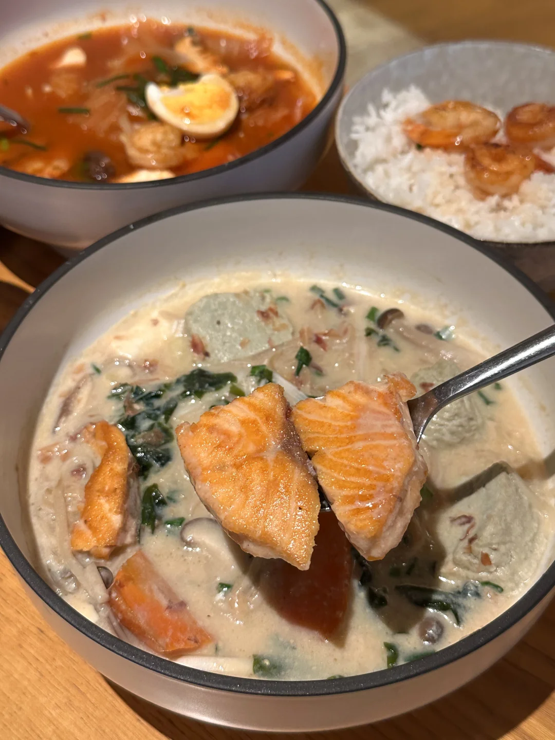 最近已经五刷了!好爱这几碗热汤 ✔️慢炖三文鱼味噌豆乳汤碗,慢熬出来的汤底奶呼呼的! ✔️香煎芝麻虾韩式泡菜汤碗,喜欢泡菜微微辣的汤底,和大虾配米饭吃 香煎牛菲力南瓜能量烩碗!也不错! 南京南京新街口一人食一人食吃什么打工人午餐