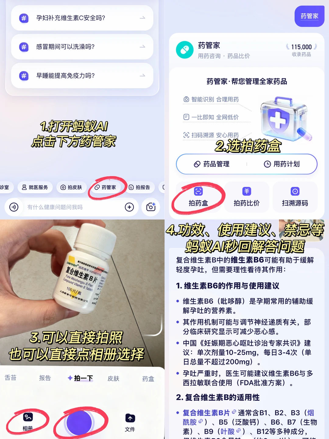 更贴心的是,在不确定维生素b族哪个牌子好、选的产品是否合适时,可直接拍药盒上传解读💡