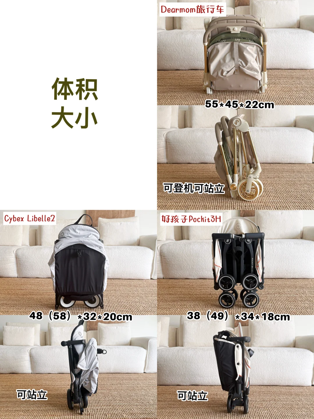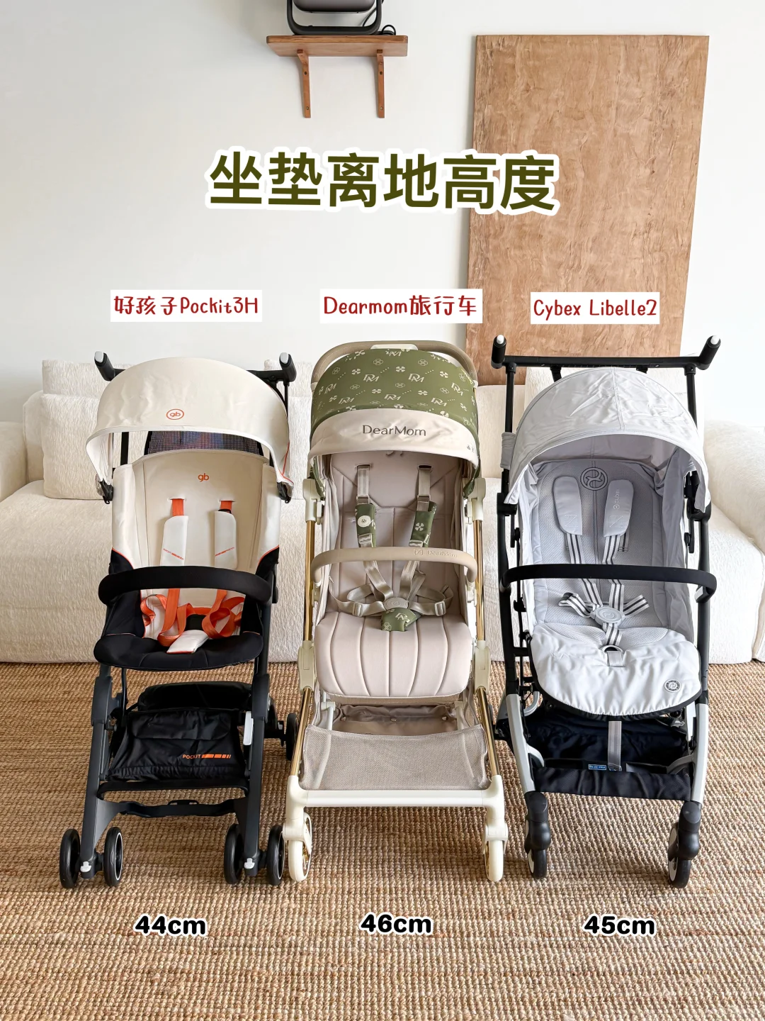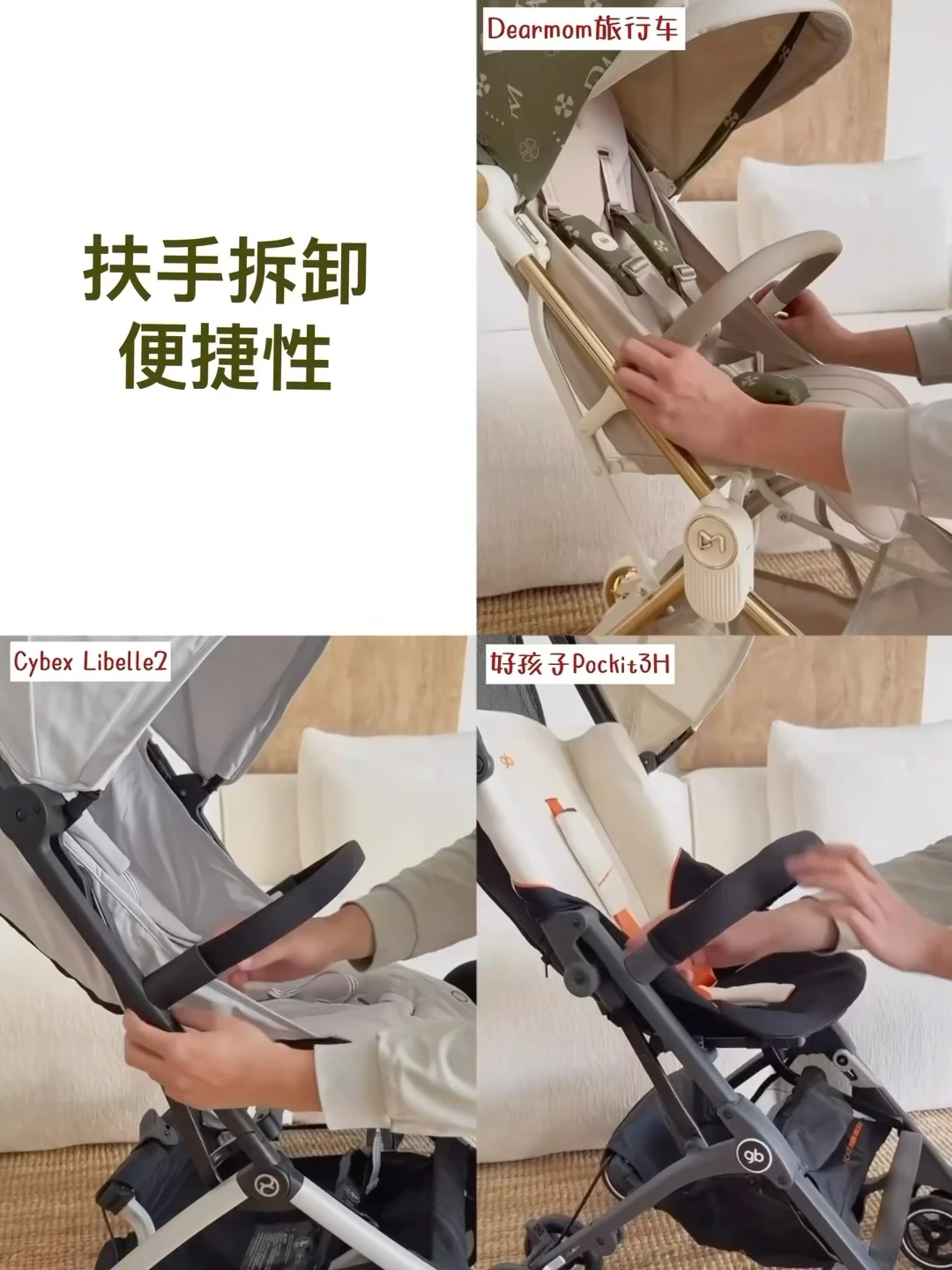 鉴于之前的踩雷经验告诉我,要想少踩雷,一定要多看多对比,所以一下就买了三辆比较热门的口袋车,伞车对比,分别是好孩子口袋车、Cybex Libelle2、DearMom口袋旅行车