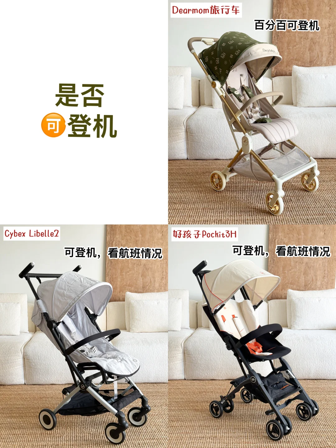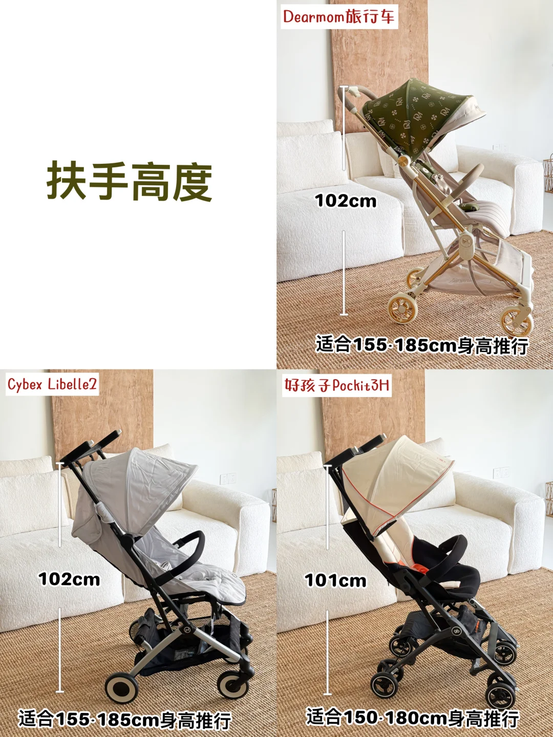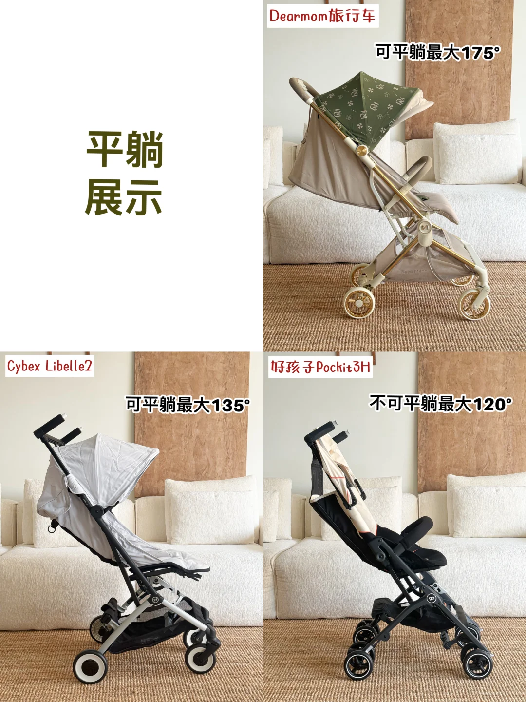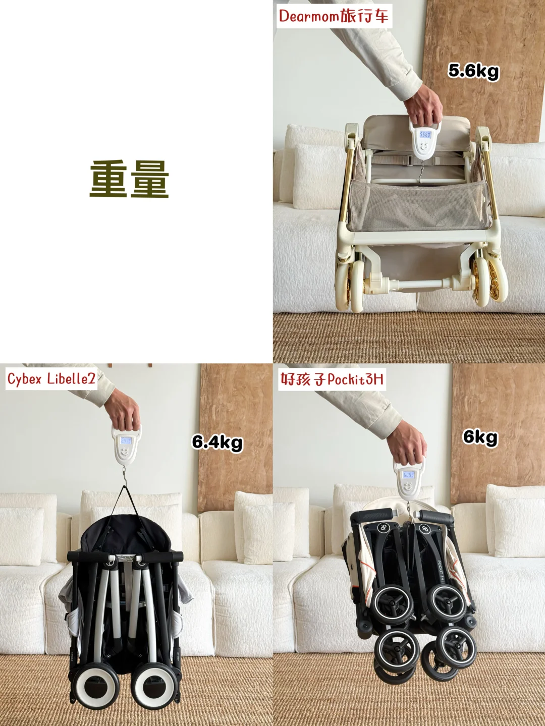 鉴于之前的踩雷经验告诉我,要想少踩雷,一定要多看多对比,所以一下就买了三辆比较热门的口袋车,伞车对比,分别是好孩子口袋车、Cybex Libelle2、DearMom口袋旅行车