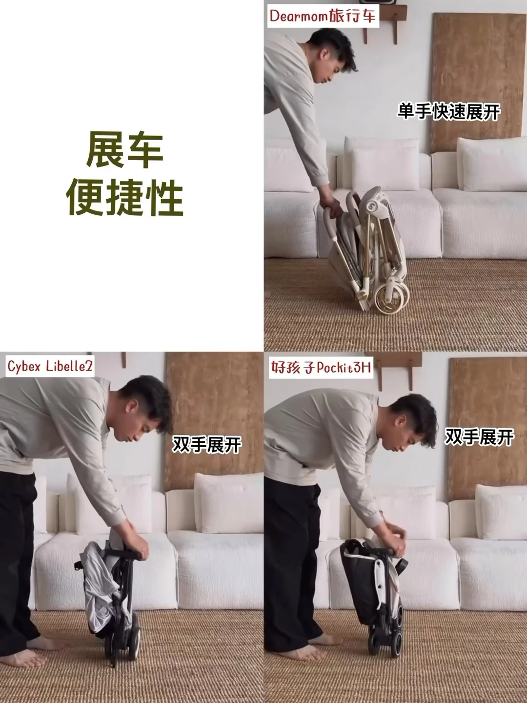 •收展车最方便的是DM单手一秒就能收起来,cybex收车也比较方便,但是顺滑度会弱一点,好孩子必须双手