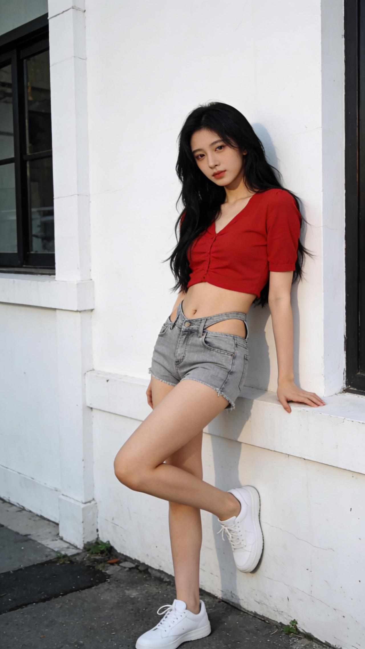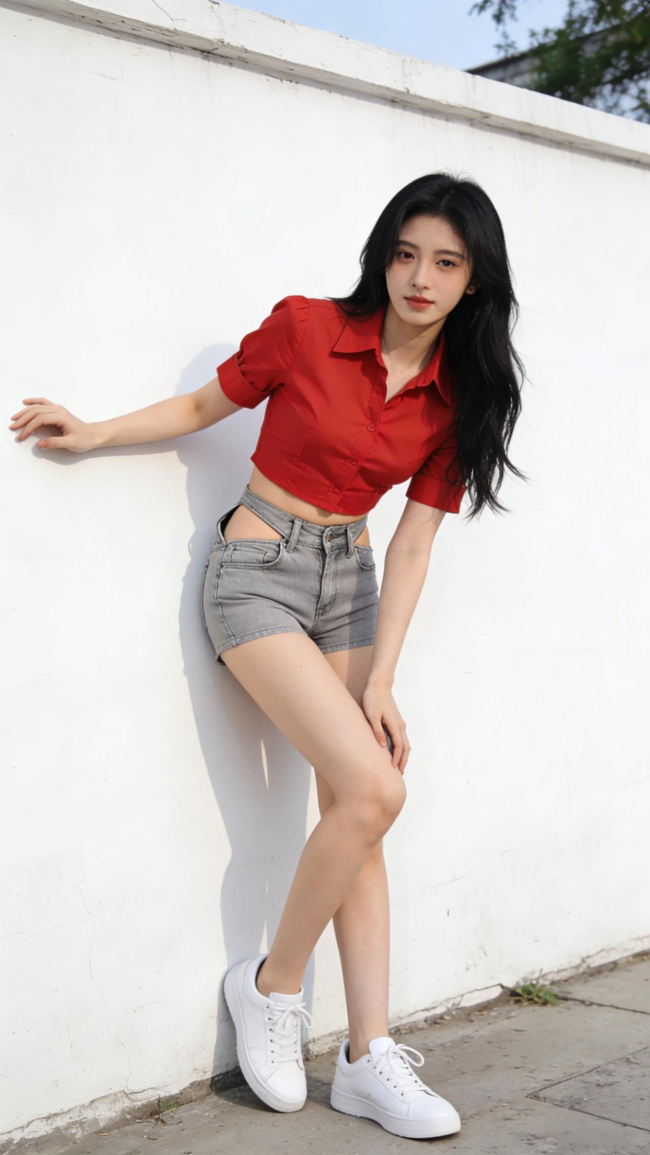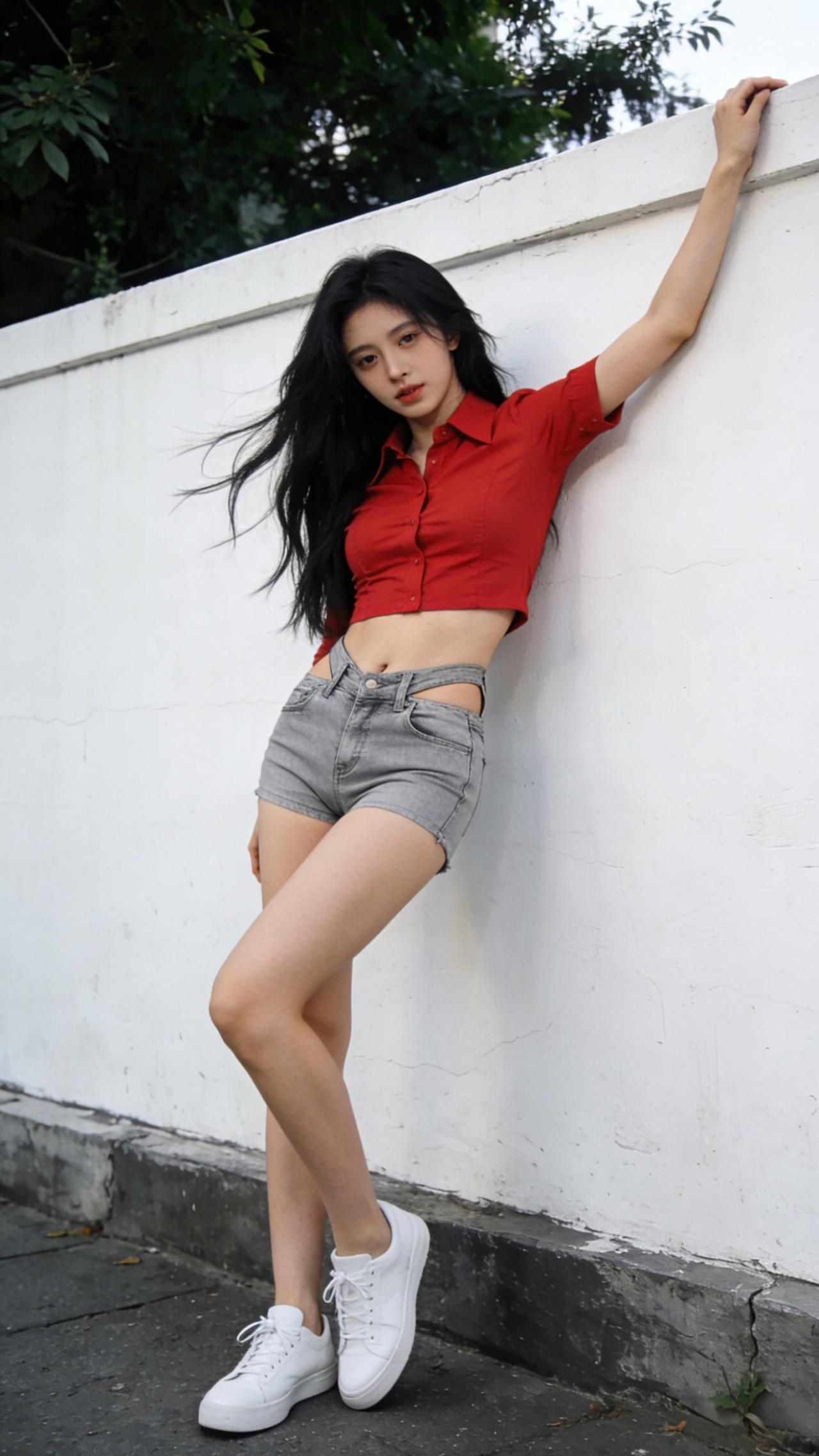 红衣倚墙立,白鞋映影斜。怎样穿搭知性又显身材? 时尚