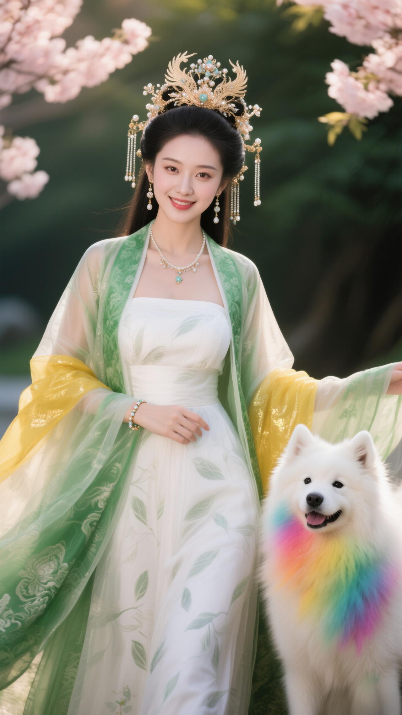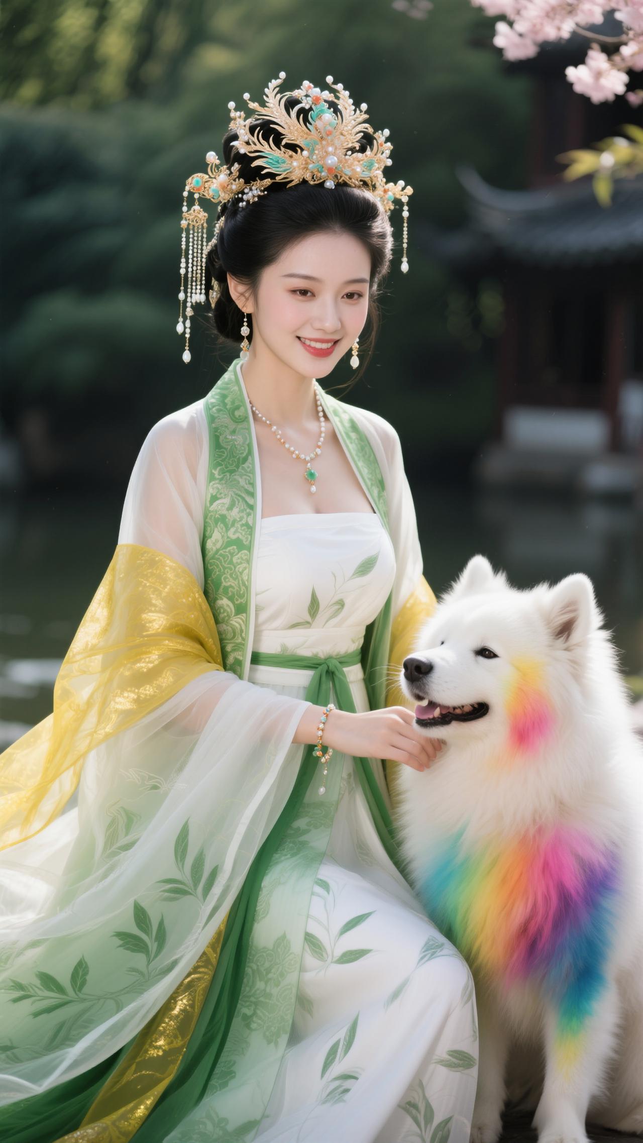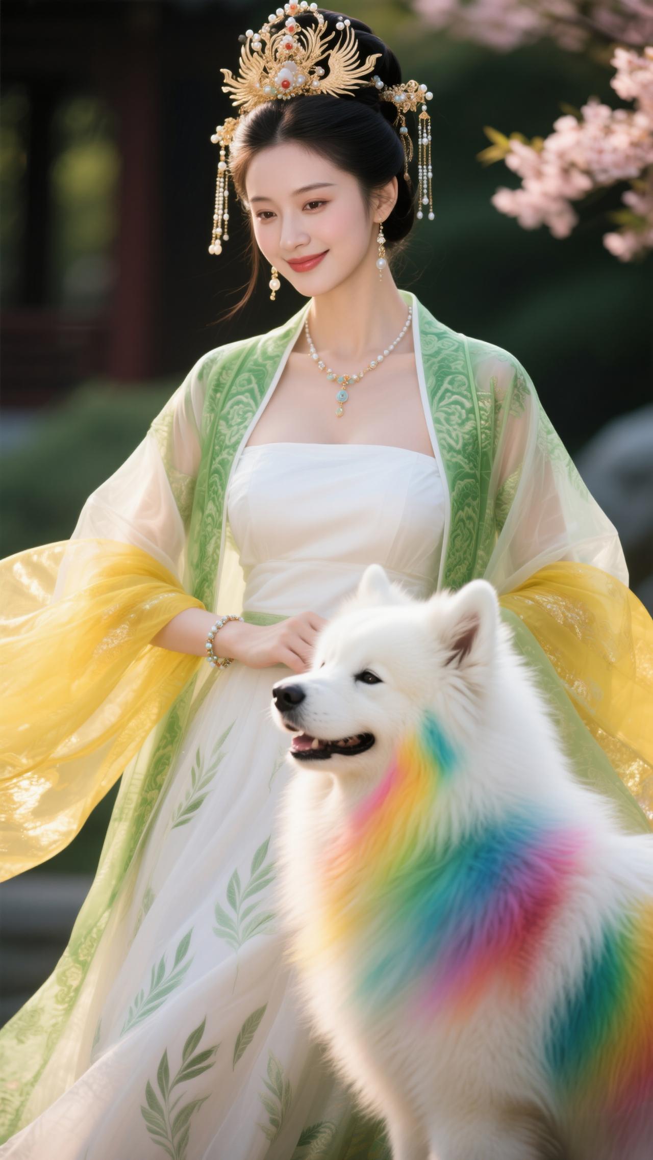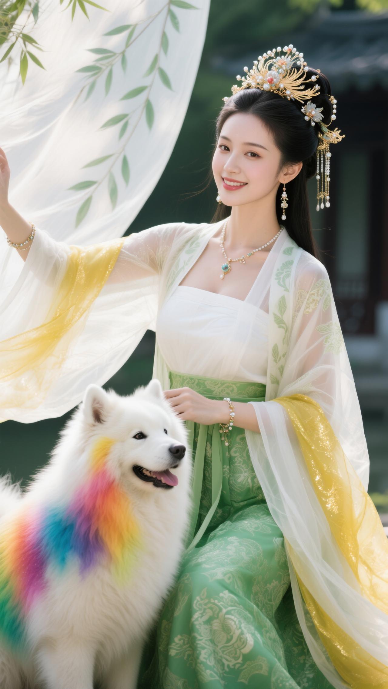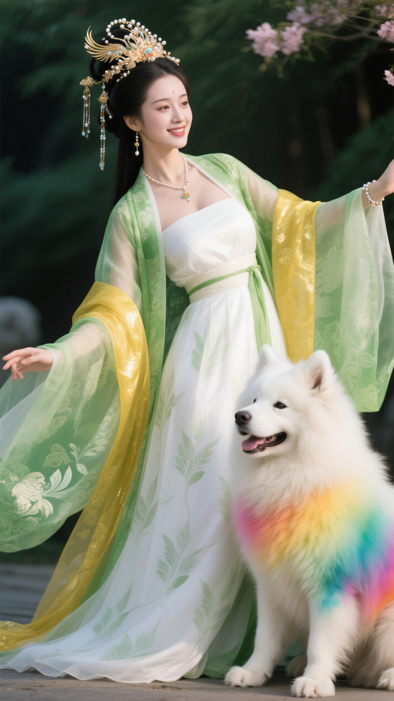 《采桑子·芳阶戏犬》 绿衫黄带临风舞,金钿凝光。 笑绘毛郎,点染霜毫惹犬忙。 阶前花气熏衣软,风拂丝扬。 一晌疏狂,共伴仙萌醉暖阳。