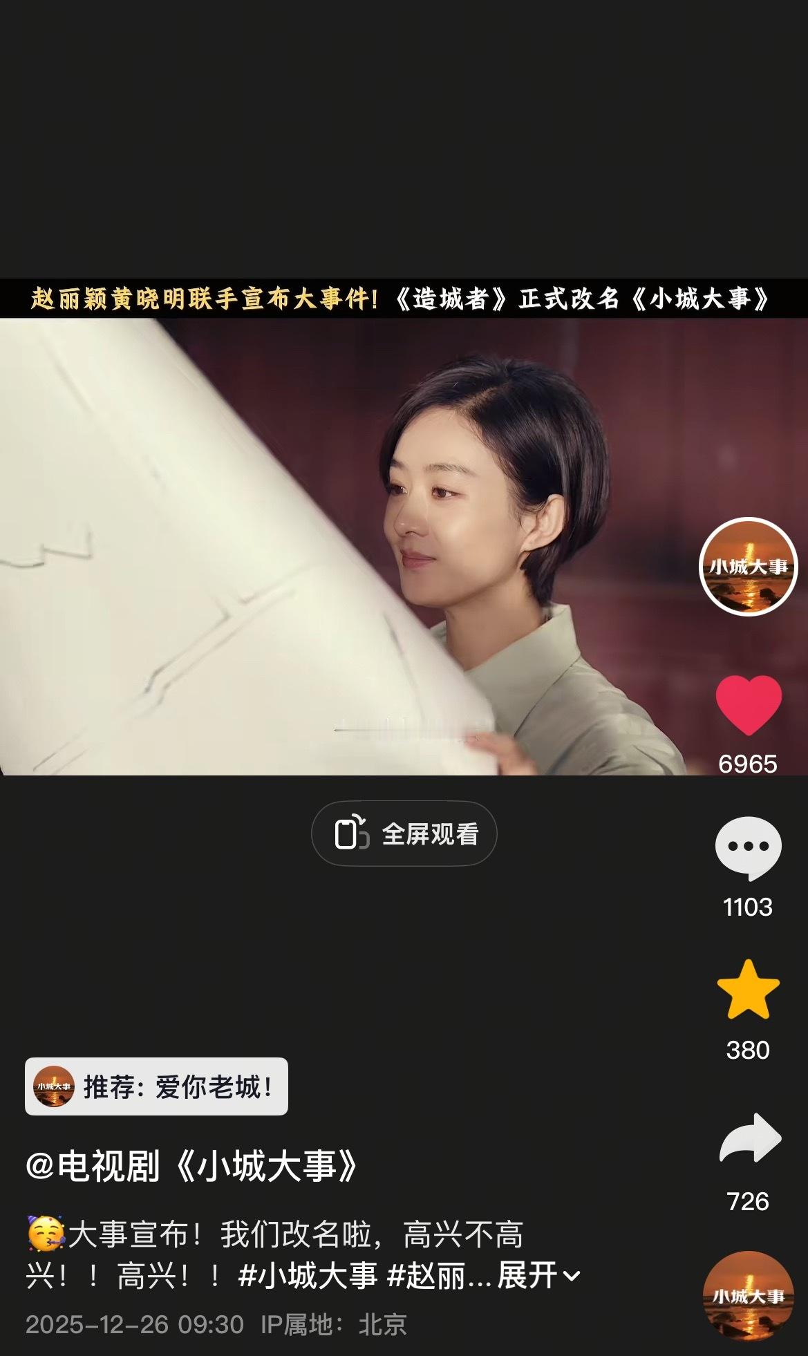赵丽颖黄晓明拉帷幕海报你们看到官博的推荐了吗?这个小城大事太会整活了,每个推荐都