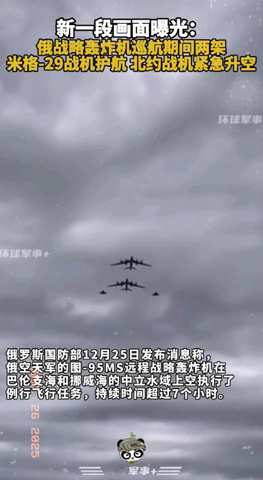 普京派遣两架可携带核弹头的图-95MS战略轰炸机,飞越挪威海,向英国北部空域进发。北约战斗机飞行员紧急升空拦截。 这可不是普通的训练飞行。事情发生在12月24日至25日的圣诞夜。两架被北约称为“熊”的图-95MS战略轰炸机,在苏-33战斗机的护航下,在巴伦支海和挪威海的中立水域上空巡航了超过七个小时。它们的航路直指英国北部,北约战机被迫紧急升空进行监视伴飞。 选择圣诞假期进行这样的长途奔袭,意图非常微妙。有外媒甚至解读,这次航线刻意靠近“圣诞老人从北极出发的路线”,仿佛是一种带有戏谑意味的挑衅。俄罗斯国防部则一如既往地淡定,称这只是“计划内的例行飞行”,完全符合国际规则。但把最具威慑力的战略核轰炸机派到北约家门口过节,这本身就是一个强烈的战略信号。 信号是发给谁看的?首先是英国,是整个北约。挪威海位于苏格兰东北部,是俄罗斯北方舰队进入大西洋的关键通道。在此展示远程精确打击能力,是在演练关键时刻封锁和威慑的能力。其次,这也是对北约内部团结的一次压力测试。面对这种擦边球,北约各国的反应并不完全一致。 更深层的意图,可能与巩固“后方”有关。就在圣诞夜同一天,波兰方面还在波罗的海拦截了俄军侦察机,并发现可疑物体从白俄罗斯方向进入其领空。东西两线同时展示空中力量,既能牵扯北约注意力,也向外界表明,即便在节日期间,俄军的战略威慑与前线行动也毫不松懈。 这次事件像一面镜子,照出了当前欧洲安全格局的紧绷与脆弱。一方面,俄军的远程航空兵活动日益频繁,从北极到北大西洋,已成常态。另一方面,北约的拦截与监视也已机制化。但这种“常态化”对峙恰恰隐藏着巨大风险,任何意外的误判或技术故障,都可能让局势急转直下。 更值得关注的是战略平衡的变迁。图-95MS是上世纪50年代的老机型,却仍是俄空基核力量的支柱。它频频出动,既是对传统威慑手段的依赖,也暴露出俄罗斯在高端常规力量上的某些局限。而北约的应对,则混杂着警惕、克制与内部分歧。未来的较量,可能更多集中在太空、网络和高超音速武器等新疆域。 一场持续七小时的圣诞飞行,看似有惊无险地落幕了。但它留下的尾迹云,却久久弥漫在欧洲上空。它提醒人们,大国竞争的剧本从未谢幕,只是切换了场景和台词。当战略轰炸机的轰鸣与圣诞钟声交织在一起,我们听到的不是节日的祝福,而是地缘政治齿轮冷酷的摩擦声。 各位读者你们怎么看?欢迎在评论区讨论。