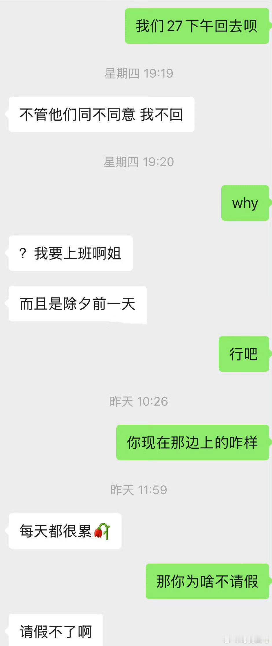 妹妹不愿意请假回家过年 同事为了请假已经不择手段了