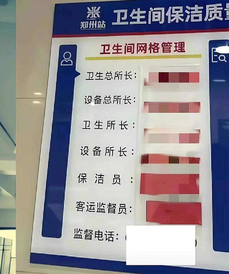 原来一个工作岗位竟然可以做到这么仔细 一位网友在河南郑州站看到了一个宣传栏,上面的信息是卫生间联系人 网友惊叹,没想到一个小小的卫生间竟然可以做到如此精细 看来,好的,服务不是一个人可以简简单单做到的,绝对是大家的力量