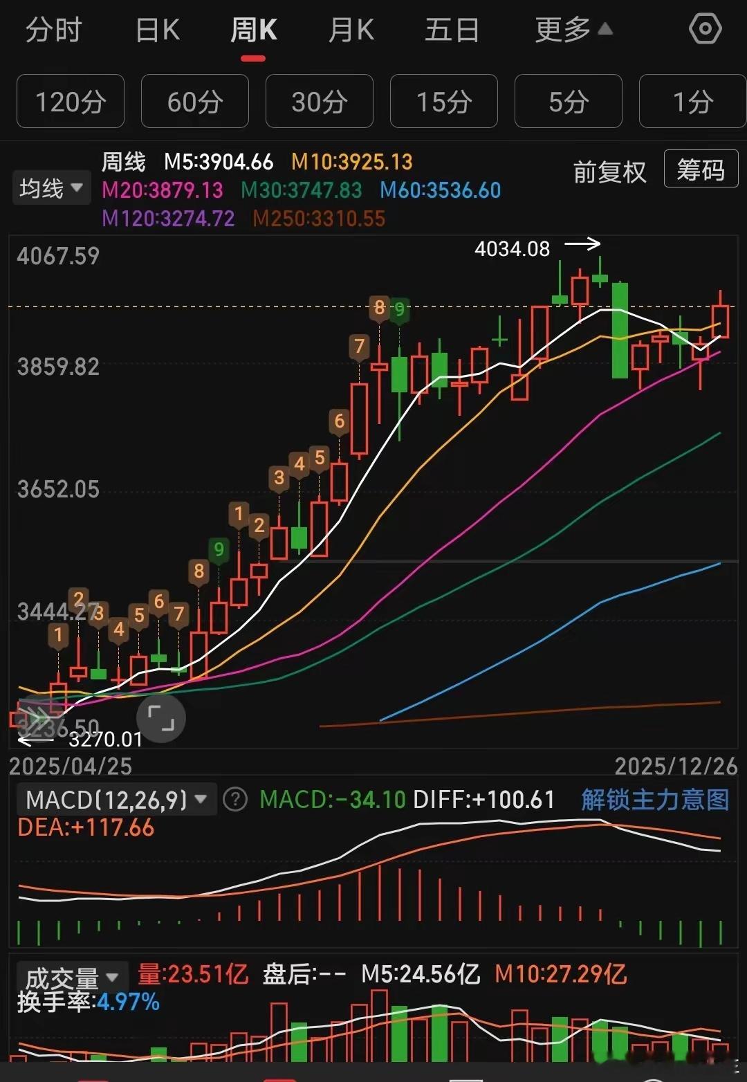 A股日线级别放量滞涨,冲高回落,长上影线,这是顶背离,乖离率偏大所致,这个看法我在周三说过,不要恐慌,下周一的支撑是加码时机记住下周的支撑,本周高点上移至3977,下周的支撑同样上移至3936点,以此为起点向4000点前进如果说昨天空翻多犹豫,今天是空翻多果断入场而形成的成交量放大,获利盘了结,空翻多入场接盘所致关键时刻还是得我来,日线级别回落,周线级别缩量上影线K线,非常健康,下周继续上涨坚定不变