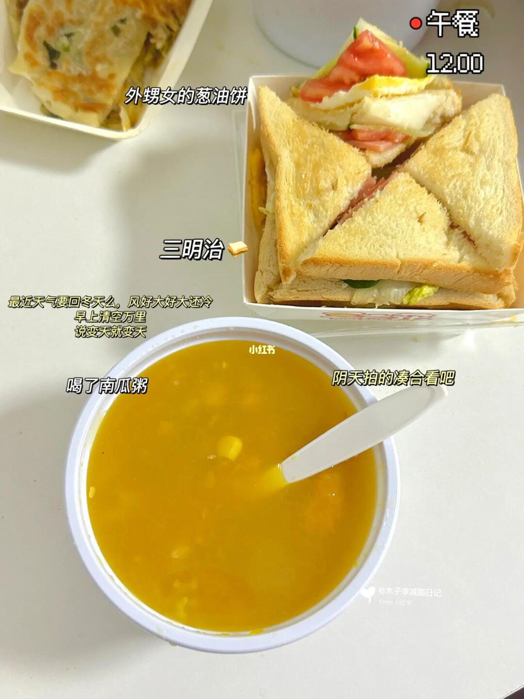 ▪️初始体重120斤 ▪️已减27斤 - 🥣早:盐卷三明治 | 牛奶🥛 | 油桃 | 阳光玫瑰 | 蓝莓 🥣午:三明治 | 南瓜粥 🥣晚:炒粉干 💧今日喝水2000ml 🏋️运动:🈚 - 💭现在减脂更偏向随心所欲了,想吃外卖我就点,晚上饿了就吃点,不会控制严格了,现在我更多的想保持住现在的体重,瘦就瘦、不瘦也没关系!不胖就行😃