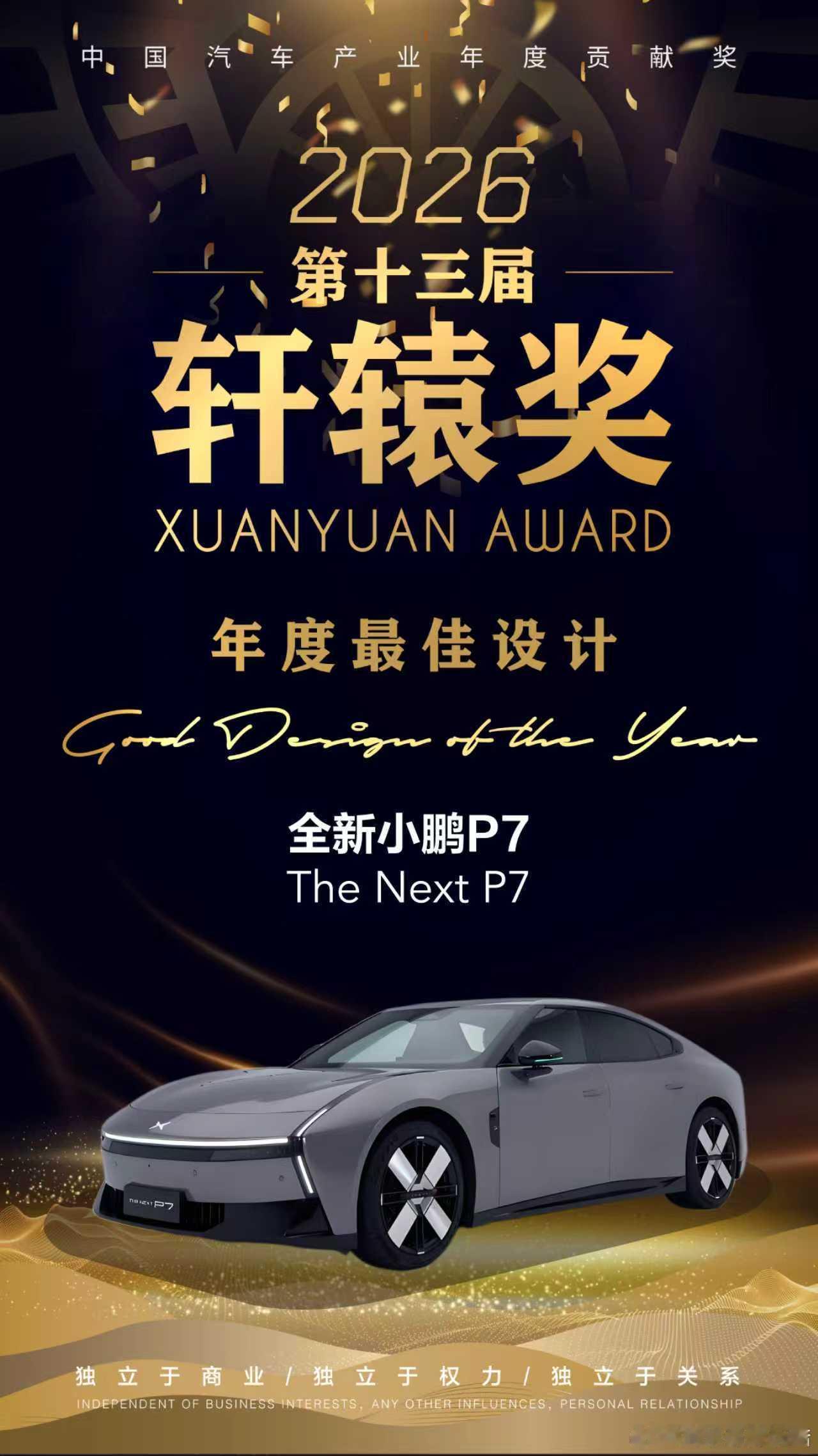 年终奖都没P7拿得多!设计、智能、座舱奖杯拿到手软,轩辕奖/华輅奖等权威认证全刷屏了😎这颜值和智舱实力,谁看了不说一句国货之光?所以你觉得,买车更看重设计美还是智能强?来杠!👇小鹏P7拿奖拿到手软