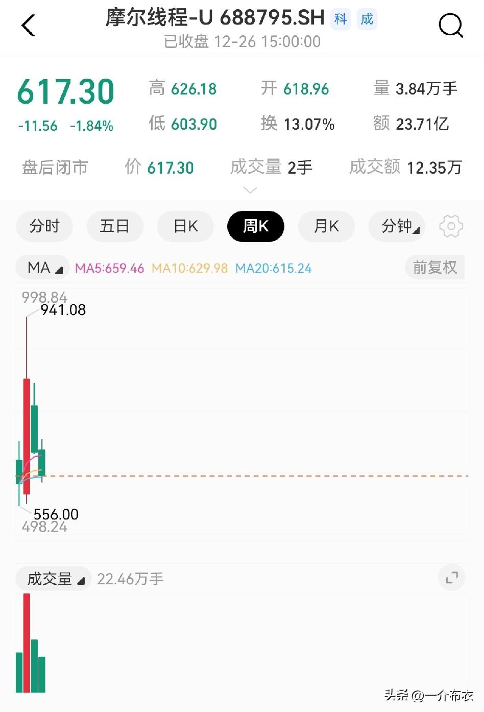 摩尔线程从最高998.84元/股,到现在617.3元/股。 沐曦股份从938.5元/股,到619.7元/股。 业绩面,透支未来3年,甚至5年的业绩,这还是乐观情况下的预估。 现在到一季度业绩报告出来之前,会反复震荡下跌,不是公司不好,主要泡沫太大了,机构太多根本没有对手盘。 等哪天进入科创板指数才有可能反转。