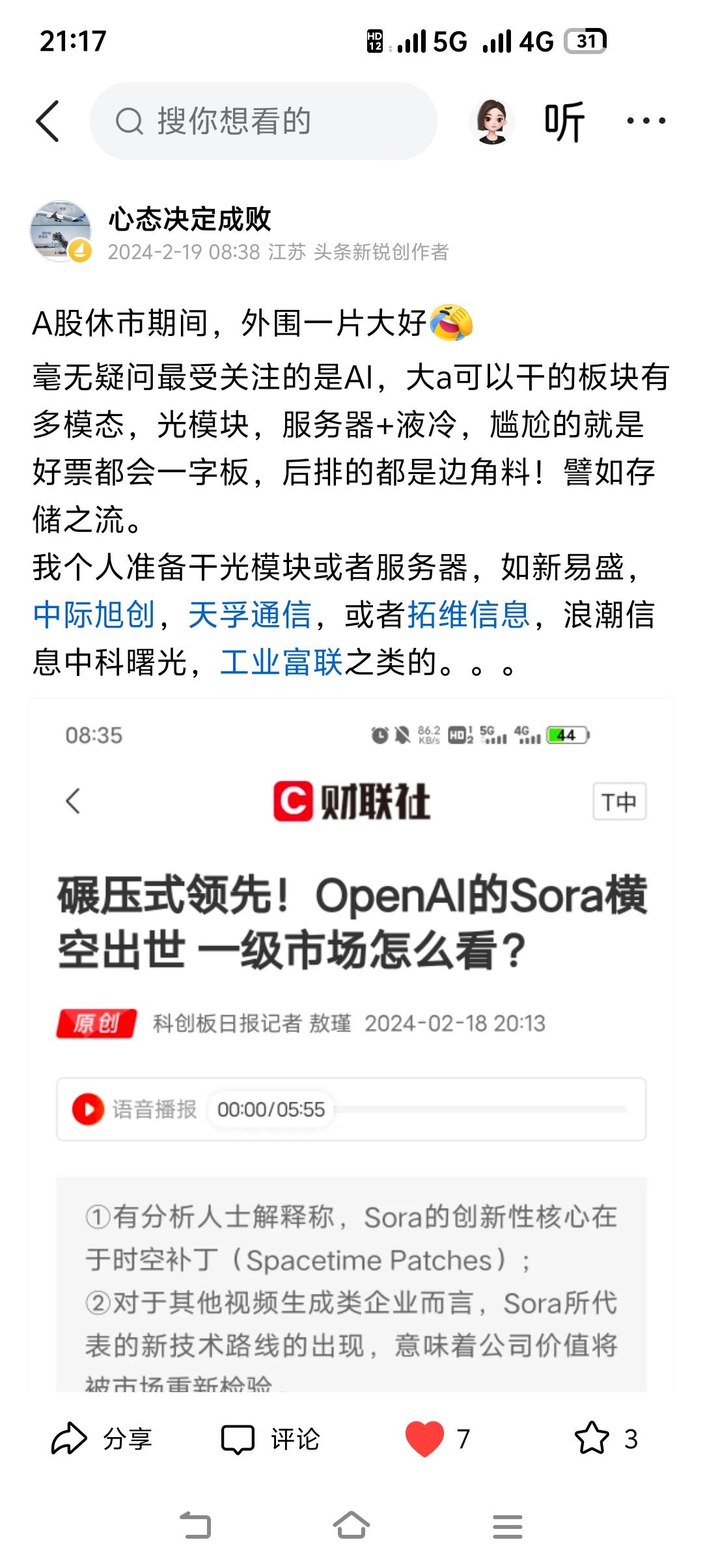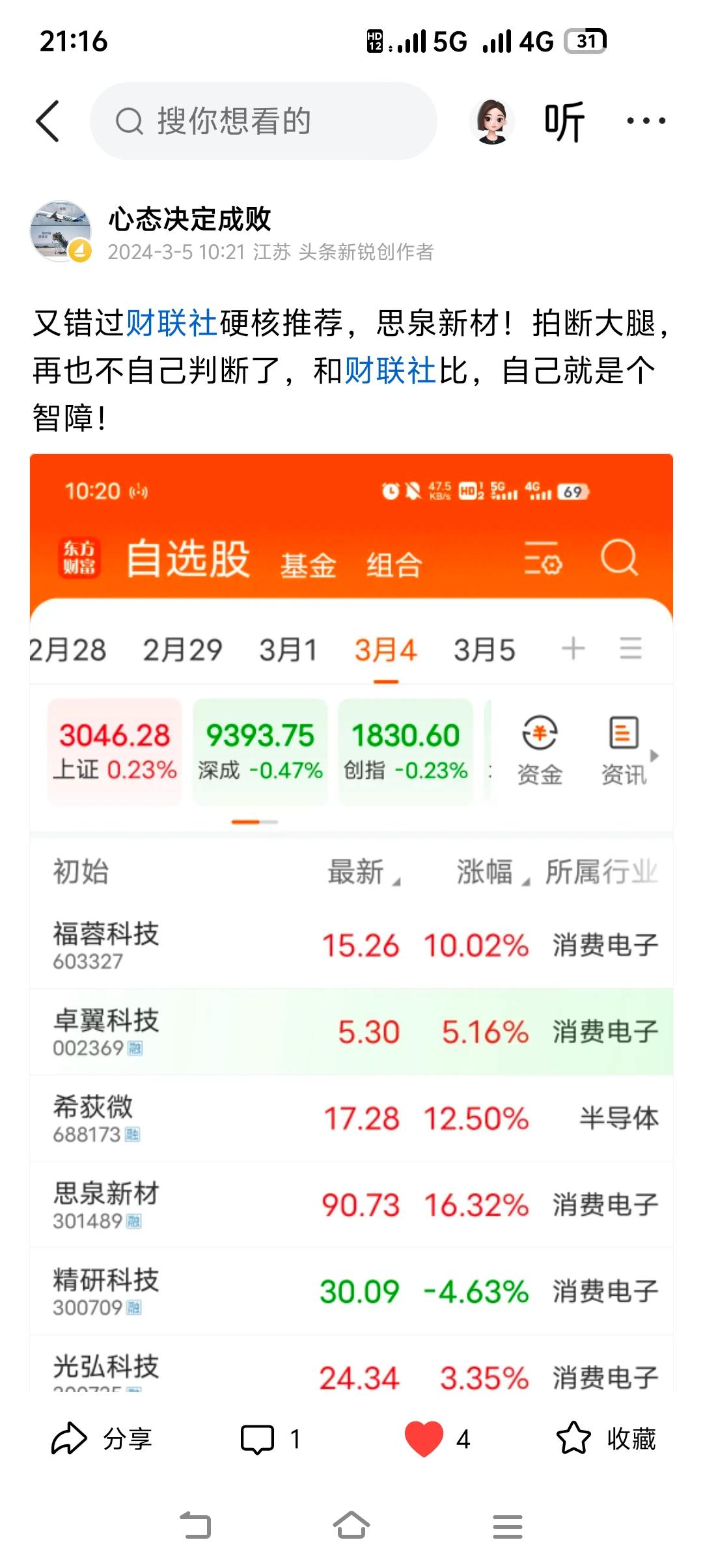 有人问为何不发了,其实我一开始发也是自己做笔记用,当初设想是记住人气股,等回调4-7个月后再回头干,只要管住手大概率赚钱,我就用时间换空间!想的很美好,可每天看的太多就管不住手,沉迷于追涨杀跌。 至于为何不发,之前帖子说过,短期无人能预判,短期你都看不准,谁信你长期!被套一天就难受,被套一年恨不得立即剁手,谁知道割完就大涨[捂脸]所以发了帖子万一让别人套住就对不起了🙏🏻 财联社有看不完的文章,我之前截图过。如果还不够你看,你可以加头条up主晋小乐,郝帅哥!帖子很有质量[比心]