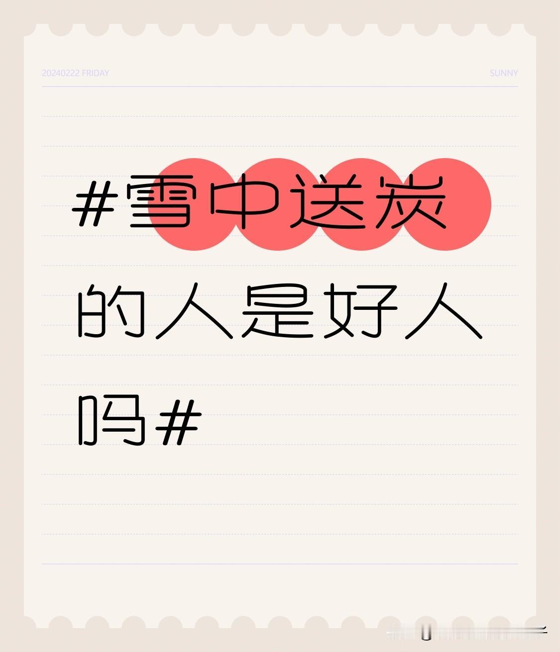 雪中送炭的人大概率是好人。就像齐白石未成名时参加宴会,被达官望族冷落,处境尴尬到想逃离,这时名声鹊起的梅兰芳热情打招呼、尊重他,这就是典型的雪中送炭。梅兰芳在齐白石落魄时给予温暖和尊重,这样的举动尽显善良与厚道,无疑是好人。 能在别人陷入困境时伸出援手,说明这人有同情心和同理心,不冷漠。他们不看重对方当下的处境,更在乎道义和情义。雪中送炭之人,值得我们深交,因为他们往往是真心待人的。所以从很多情况来看,雪中送炭的人是好人。