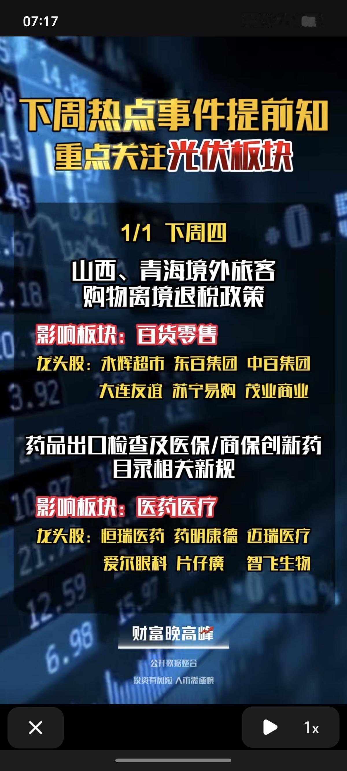 12.29~1.05下周财经热点事件前瞻! 1.脑机接口 2.氢能源大会 3.福建自贸区 4.卫星导航 5.百货零售 6.医药医疗