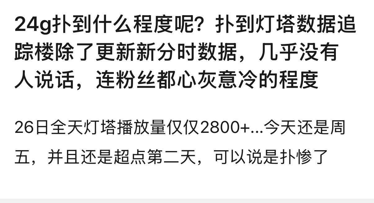 虽然可能已经无人在意《长安二十四计》,但还是想播报一下超点第二天的成绩,热度值已经跌破9500,周五全天灯塔2800万,大喜咯