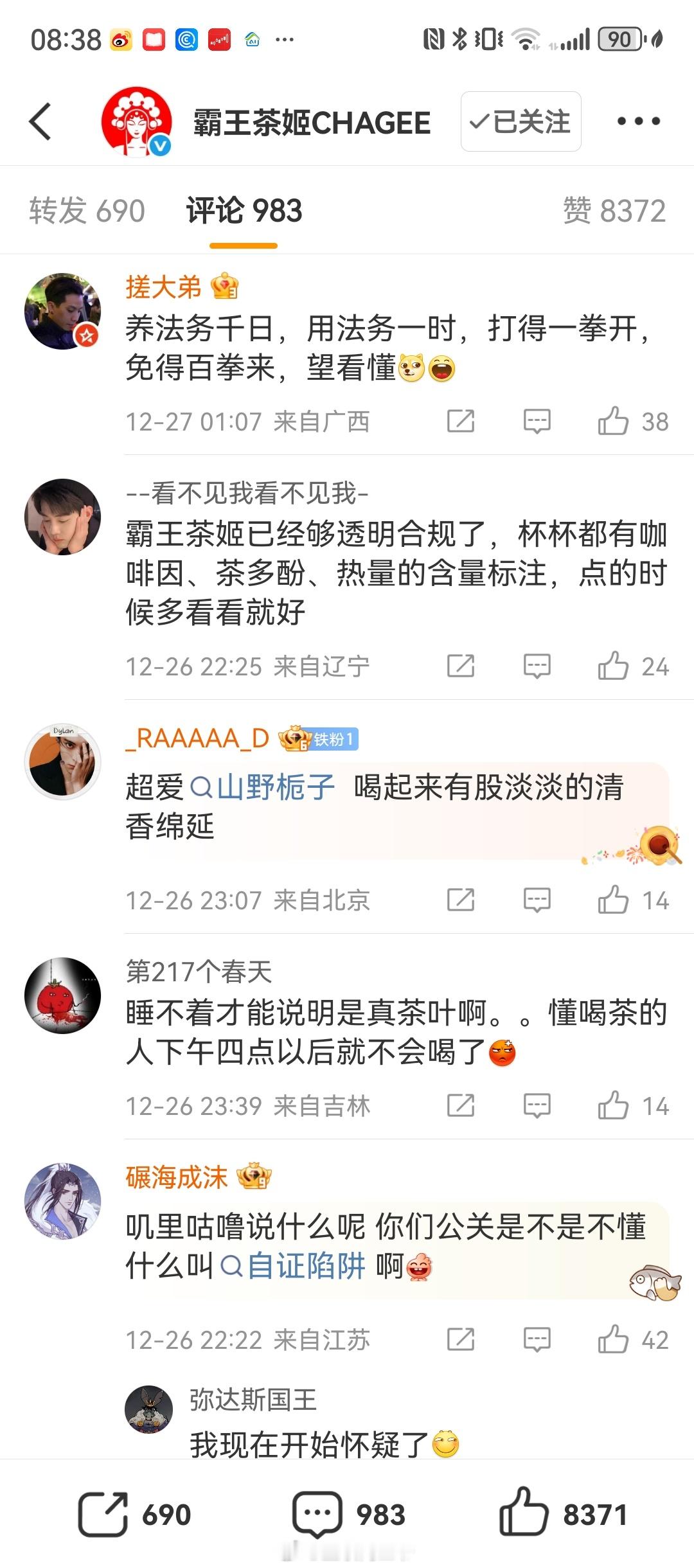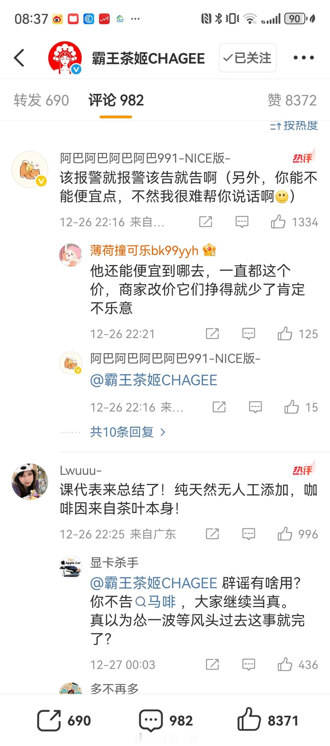 霸王茶姬大跌评论区这么多力挺的,回应写的很好,该报警报警,该告就告吧。给这些支持你的消费者们一个胶带,毕竟还要一直陪中国CHA走下去!