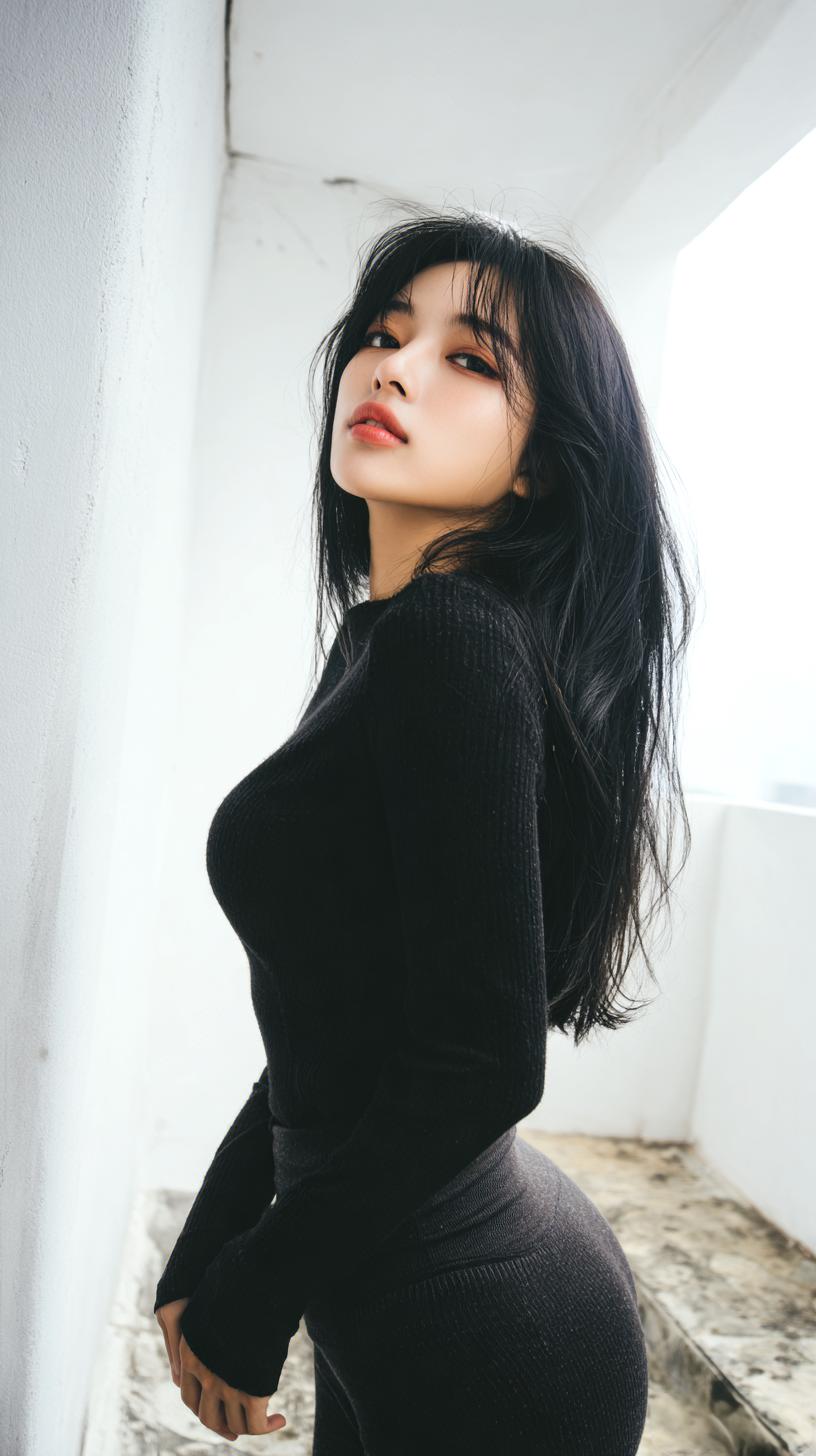 黑衣少女,冷艳如霜,红唇轻启,引人入胜。黑衣少女自拍 黑裙感美女 温柔黑裙少女