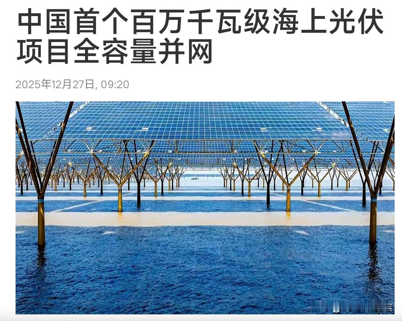 中国全球最大的开放式海上光伏项目:100 万千瓦海上光伏项目全容量并网发电。用事实“打脸”特朗普言论:他不会批准风电和太阳能项目,因为他从没见过中国的风车发电! 特朗普以倒退的方式重新布局美国的能源--重燃煤炭发电,而否决了美国的绿能电力包括太阳能及风车发电。更是否定了中国太阳能发电及风车发电,并称中国生产的这些绿能发电设备中国自己都不用,为什么美国要用呢?自称从来没有见过中国的风力发电站。 美国的媒体也用事实案例反驳了特朗普的言论,美媒表示,中国拥有全球最多的风电场与太阳能电站,美国专家也通过图片及卫星图像反驳了特朗普的说法,强调中国在再生能源领域的领先地位。但特朗普不愿看到这样的现实。 如今中国海上全球最大光伏项目组网发电量达到 100 万千瓦成功并网发电,这就是山东东营垦利海上发电的成功项目。 据了解,项目全容量建成投产后,预计年发电量可达17.8亿千瓦时,可满足项目所在地垦利区全社会60%的用电需求,为保障地方能源供应、推动绿色低碳转型提供了有力支撑。 德国数据分析公司Statista援引欧洲光伏产业协会的数据表示,2024年中国投产的太阳能发电厂装机总量为329吉瓦,占全年全球投产的太阳能发电装机总量的55%。 当下中国再生能源发电 风力发电 太阳能光伏发电 水力发电 及人造太阳能发电将逐步领先世界,也将成为未来中国能源的主要供应来源。而美国在这些再生能源方面确实落后于中国,但美国不敢正面面对这些事实,而只能走回头路-煤炭发电,不但成本高,更主要是污染全球大气,美国不敢面对并抛弃了再生能源发电,只能说无法面对中国再生能源的领导地位,除了阻止就是贬低或拒绝再生能源! 而咱们山东海上光伏发电成功之后,特朗普内心更加的不是滋味,因为中国又成功了,而背后却是美国不敢正视中国的成功的心酸!