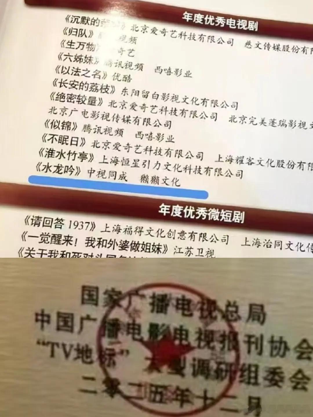 广电认证四大年冠罗云熙水龙吟又获奖啦《水龙吟》获得由国家广电总局发展研究中心指导、由国家广播电视总局主管的《中国广播影视》杂志社主办的“TV地标”电视和网络视听调研榜单【年度优秀电视剧】 !顺便期待新剧《播茧》12月29日播出!