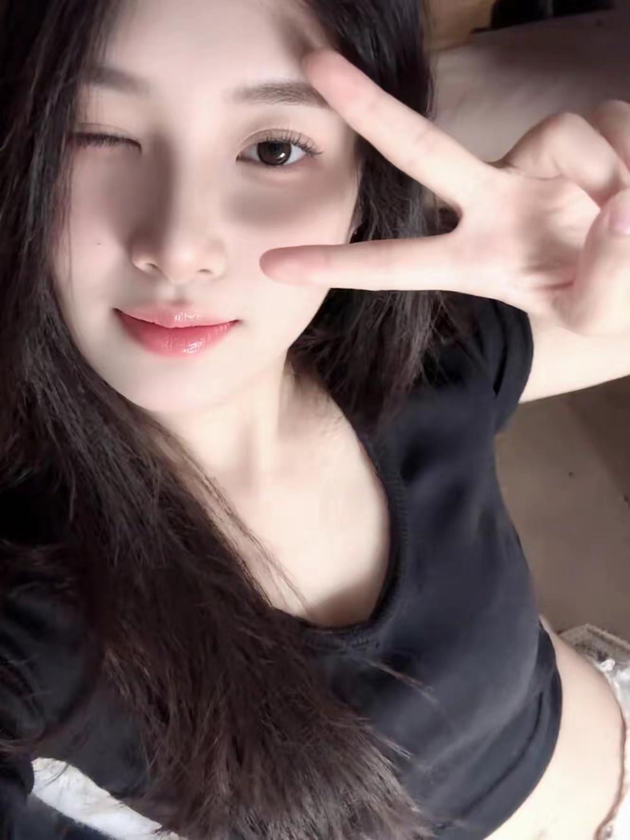 女生对着镜头比出“V”字手势,微笑。手型比心 甜系手势写真 比心自拍 脸颊比心 v脸自拍