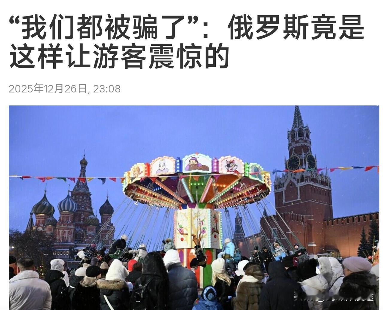 美国游客游玩俄罗斯之后,发出惊讶之声:我们被骗人!这样的声音对于中国人来说是相当的“熟悉”。犹如西方国家游客到中国旅游之后也发出相同的声音:原来我们都被骗了! 美国游客在没抵达俄罗斯之前,他们脑中呈现的画面就是:灰暗单调的俄罗斯街道,充满敌意的俄民从,科技严重落后,暴力频发毫无安全感,马路上跑的是前苏联老爷车,无 WIFI ,食品就是伏特加与粗面包,小偷遍地都是.......,这一幕一幕的画面,就是美国好莱坞电影的画面,西方媒体偏激性报道画面,西方电台及政治宣布不堪入目的画面。 以上的西方负面报道俄罗斯的社会发展情况,犹如西方国家报道现在中国的社会现象一样,只要是西方国家敌视的国家,均会被西方的媒体 新闻 政治宣传成落后 落后 落后的国家负面形象。 而对于自大自慢的美国人来说,他们总以为只有美国有大理石柱 马赛克拱顶 金碧辉煌的装饰,只有美国有先进的城市地铁,只有美国有快速列车,而许多的西方民众从小就被西方媒体与政治宣传言论充满了大脑! 当中国免签证 当俄罗斯免签证之后,美国的游客也就抱着试试前往俄罗斯 或中国之后,一切都不是想象中的画面,一切都“被骗了”。最后离开中国或俄罗斯之后,总结一句话:西方的媒体 视讯 政治宣传 全都是骗子! 美国游客在俄罗斯看到了真实: 俄罗斯大街上 共享汽车遍地都是,无现金手机支付,街头布满多元化美食 夜晚街头安全不惧怕,梦纪列车整洁干净 ,热情好客的俄罗斯民众,免费的 WIFI ,网络叫车服务。这一幕幕与中国当下的发展如同相似! 所以当下的中国与俄罗斯发展不再是西方媒体偏见的现实,开放的中国与俄罗斯 让西方游客看取到了西方政治宣传与媒体丑陋性的报道,有失公正,更是谎话连篇。更是折射出西方国家真正落后的原因:就是傲慢与偏见,谎言与欺骗!