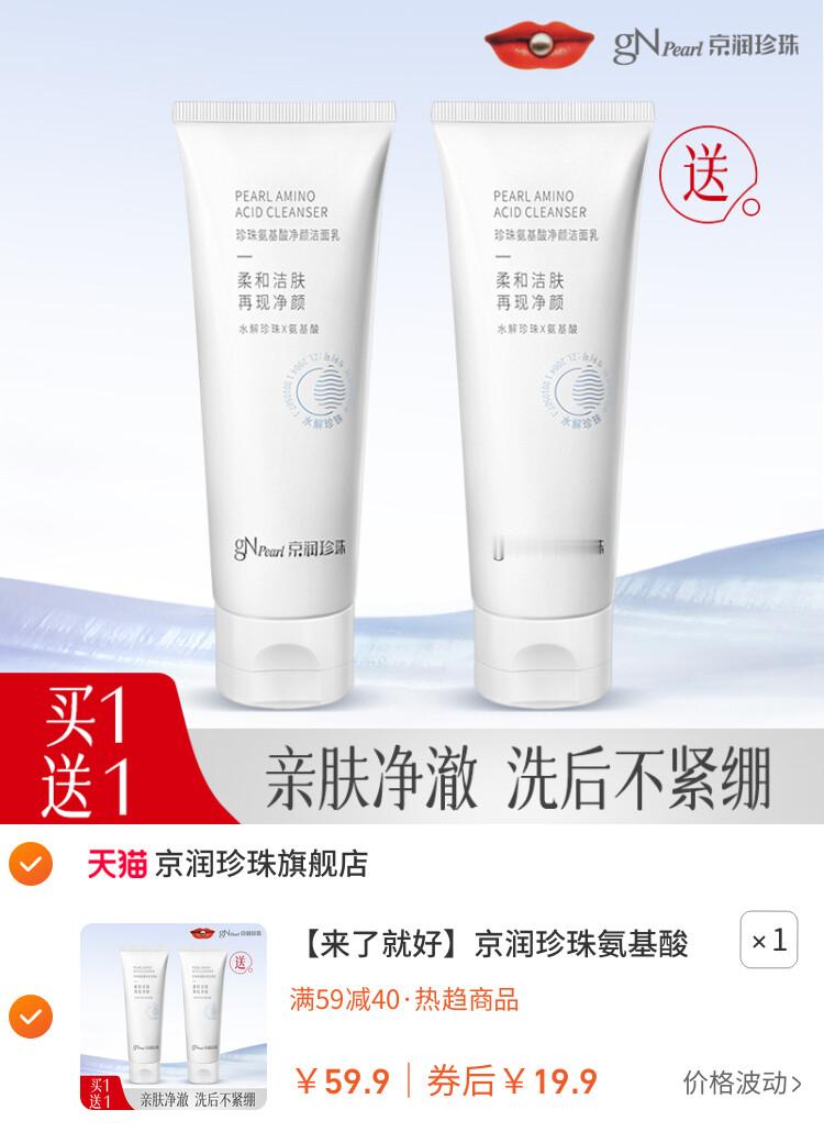 【🔥19.9】京润珍珠氨基酸洁面乳100g*2支深层清洁+控油保湿!专为