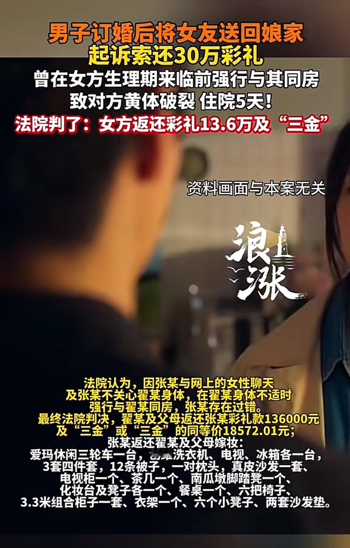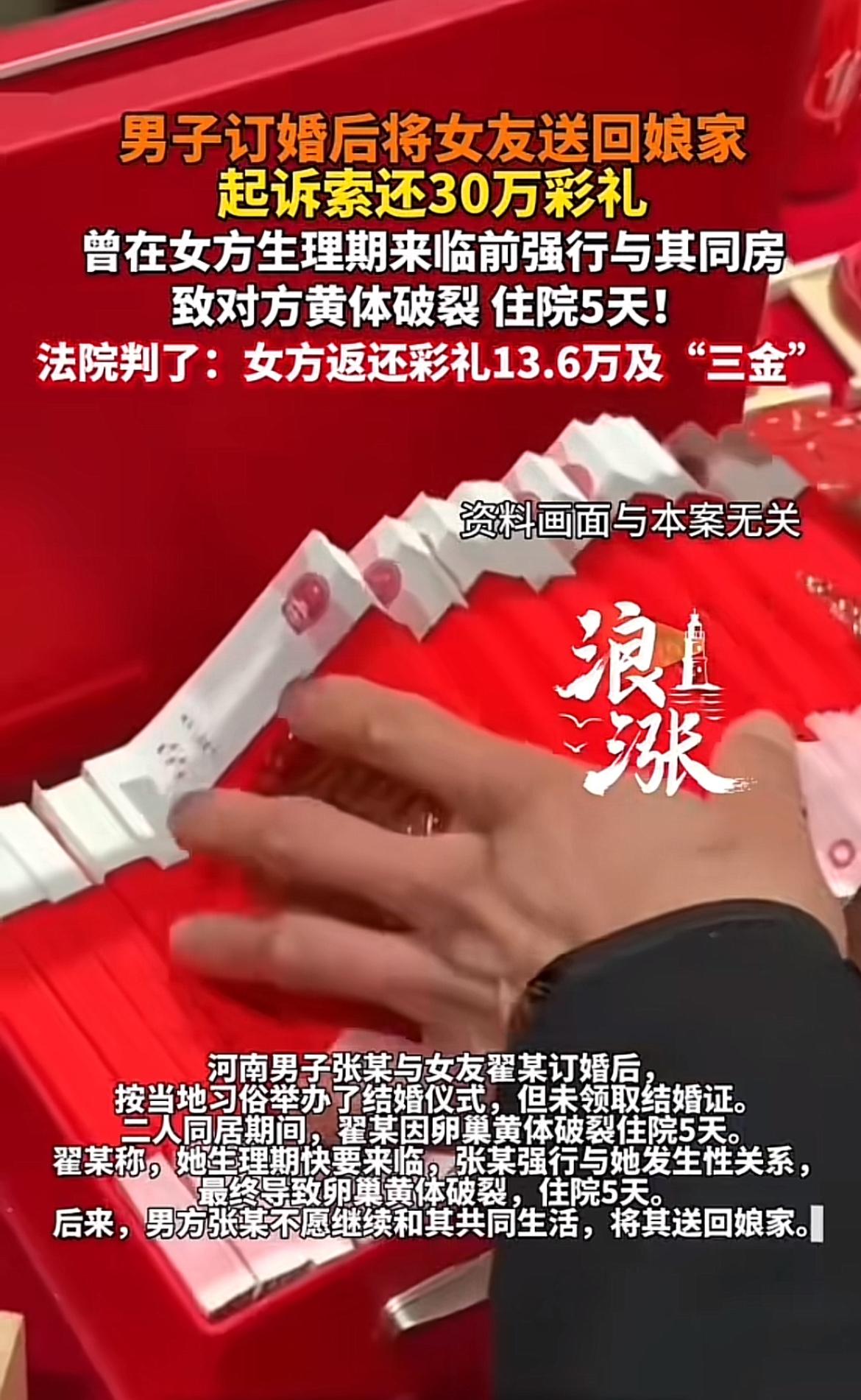 这男子婚期将至,女友因生理期被送回家,竟索赔30万彩礼,太离谱了!就像女总裁那个事儿,本以为是完美婚约,结果被取消还发现自己怀了情人孩子。感情这事儿一旦和利益挂钩就变味了。30万彩礼不是小数目,男子估计也很崩溃。这女友索赔的操作,感觉像是把婚姻当成了交易。好好的婚期成了闹剧,不知道最后这事儿会怎么解决,希望大家对待感情和婚姻都能真诚点,别让金钱毁了原本该有的美好。