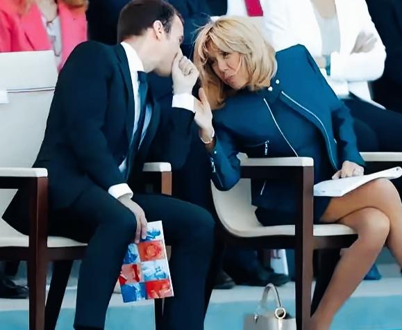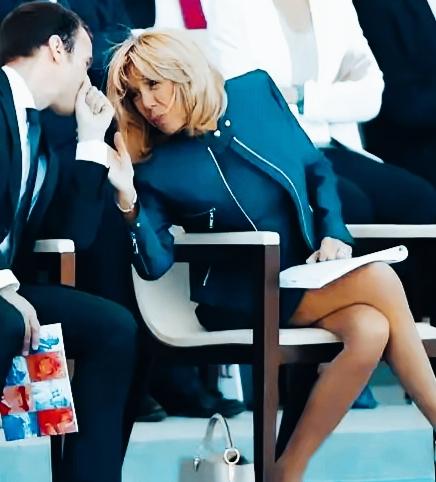 马克龙和妻子布丽吉特这是在交流什么呢? 这是在说什么悄悄话呢? 马克龙还用手挡着嘴,这是害怕看出说话嘴型来吗?
