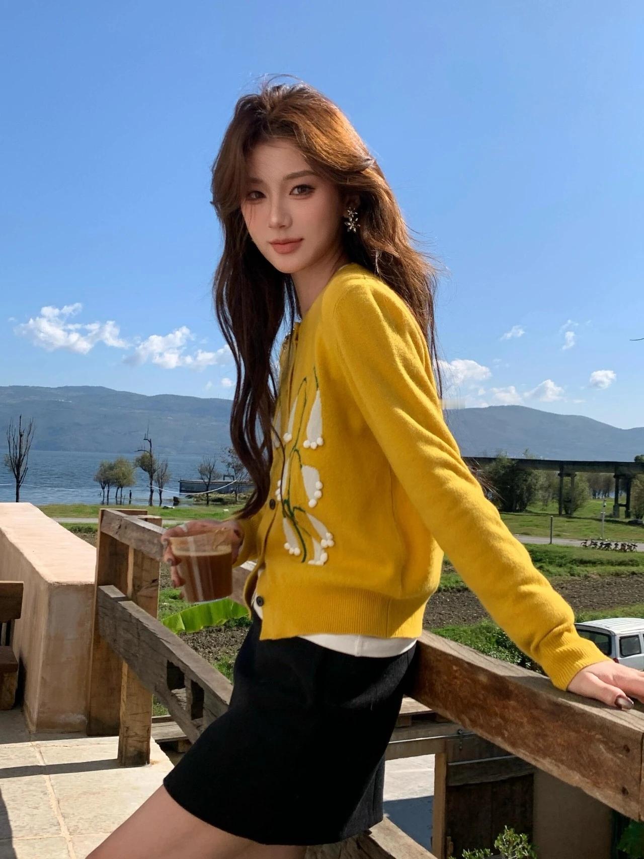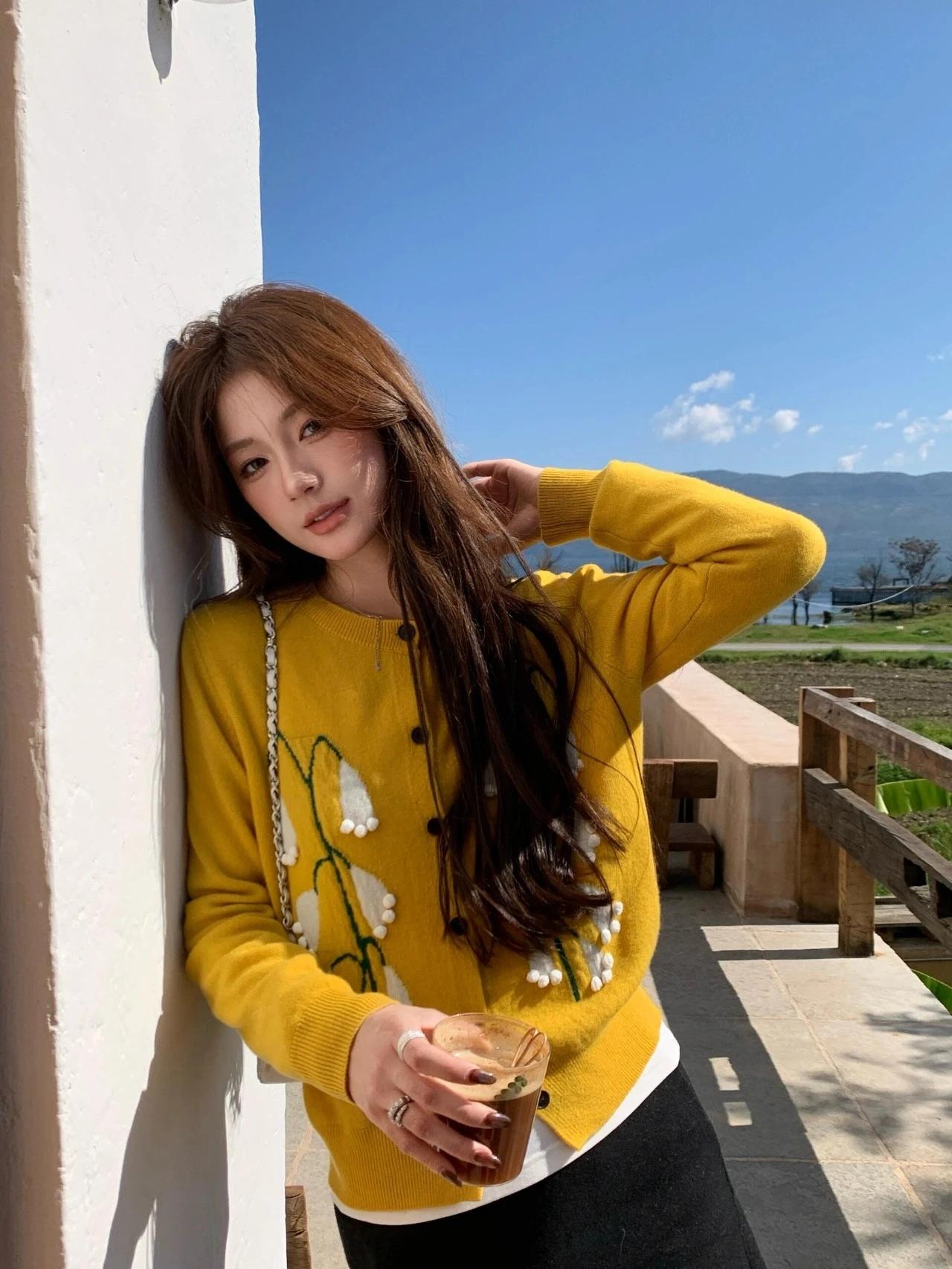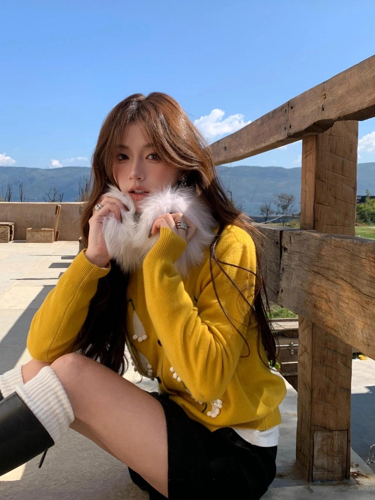 把蓝天和湖光揉进日常,黄色针织衫是今日份的明媚呀