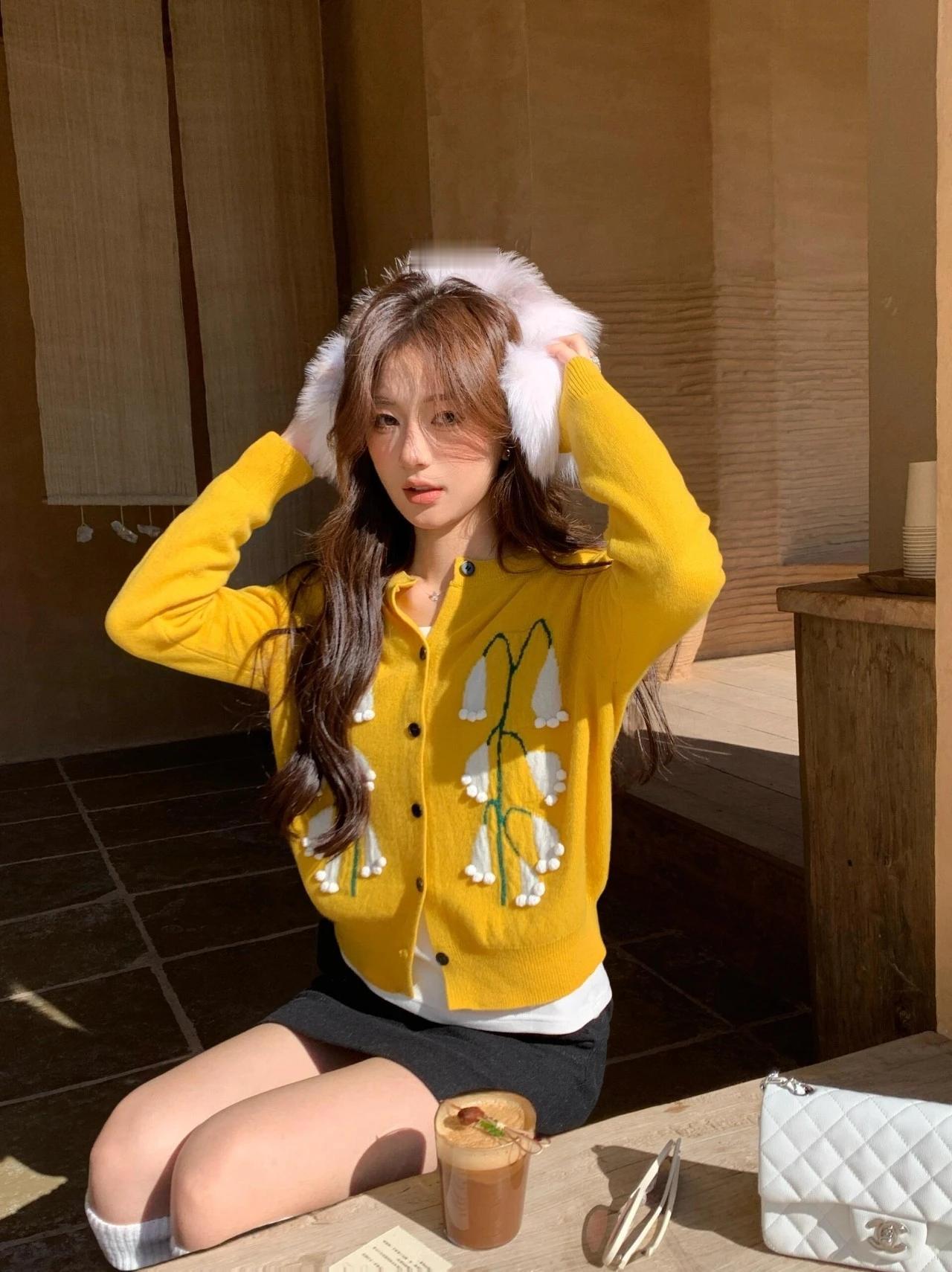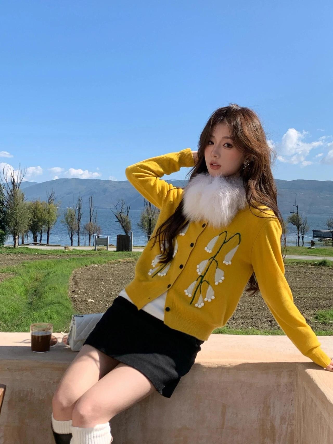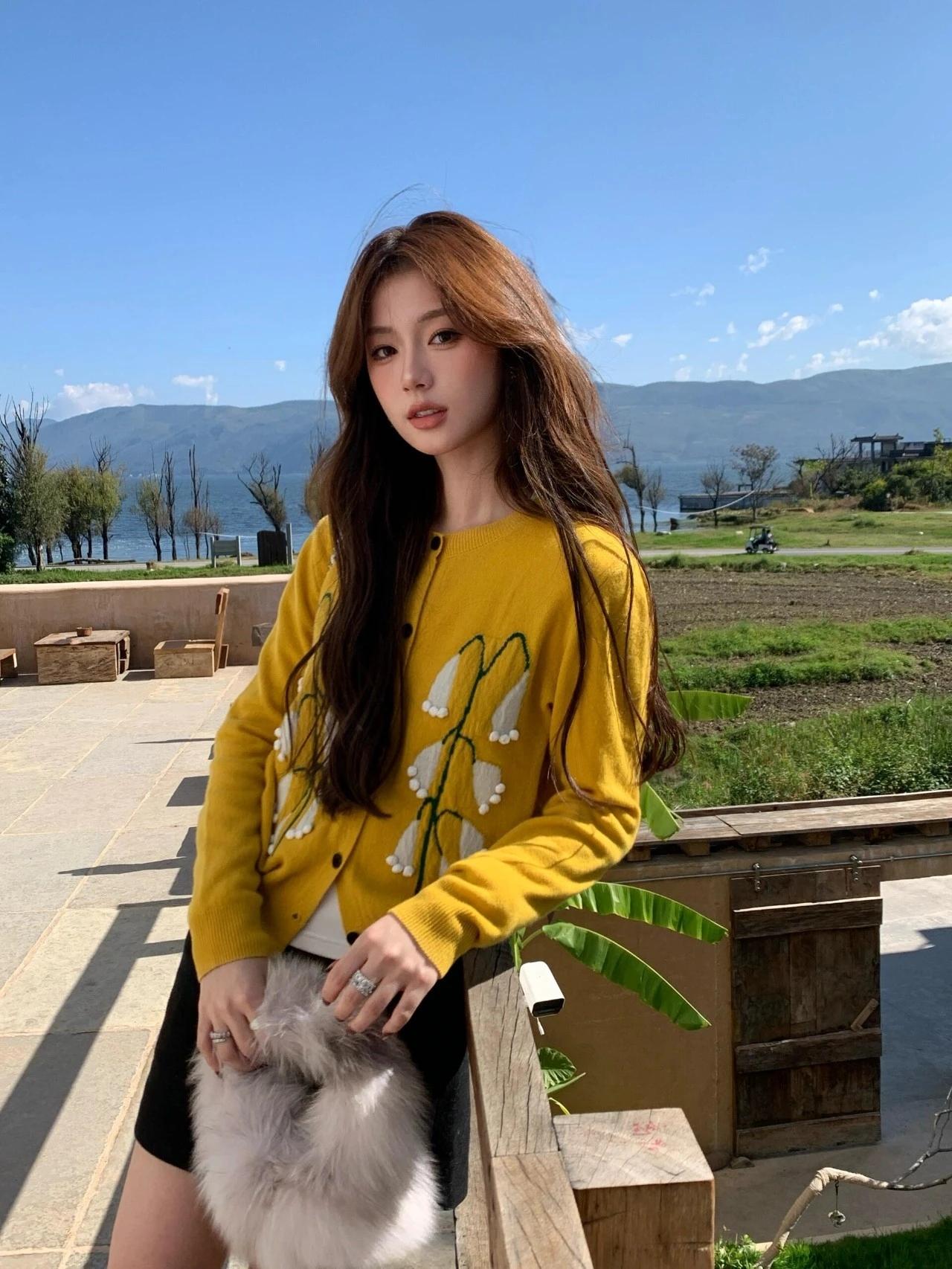 把蓝天和湖光揉进日常,黄色针织衫是今日份的明媚呀